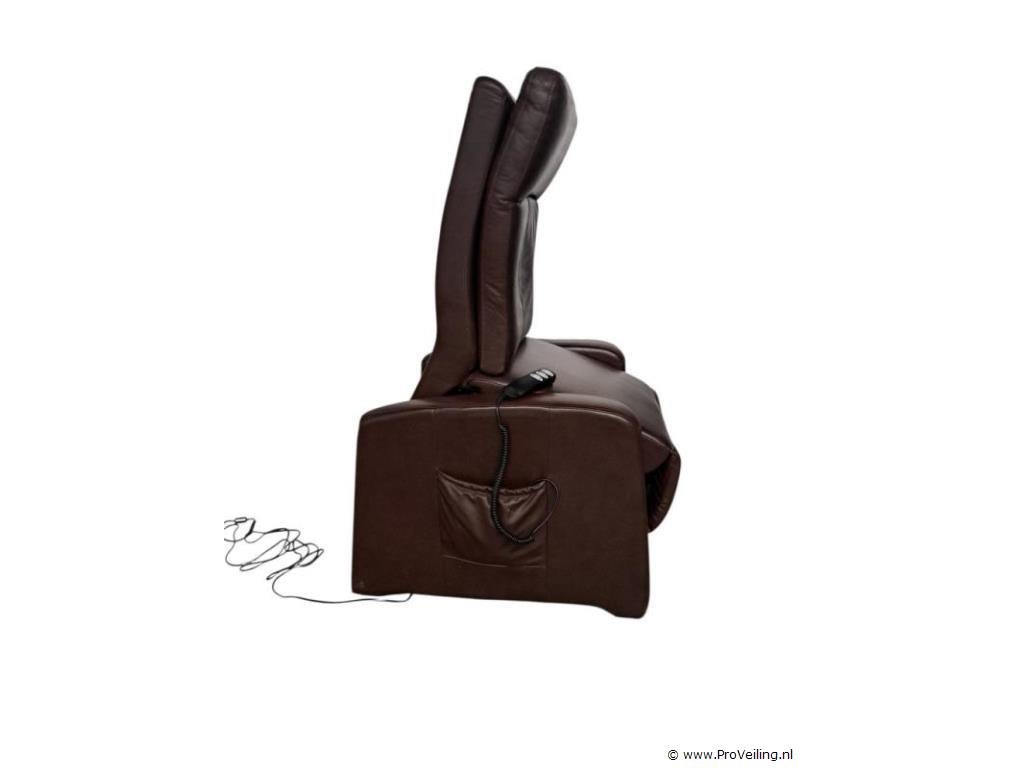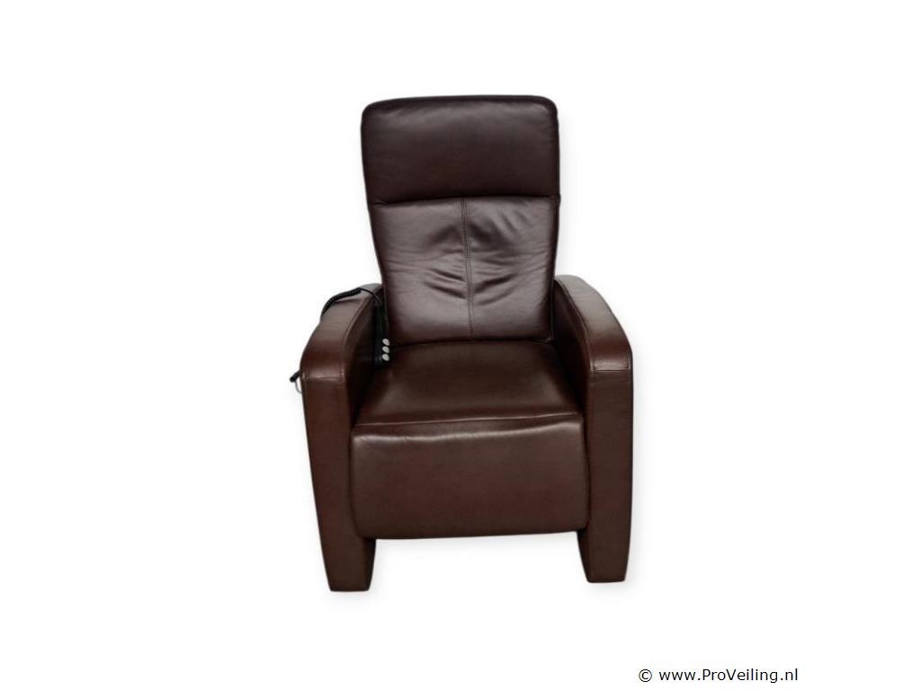 Elektrisch verstelbare relax- en sta-opstoel. Uitgevoerd in bruin leder. Verkeert in goede staat en werkt naar behoren. Comfortabel en gebruiksvriendelijk.