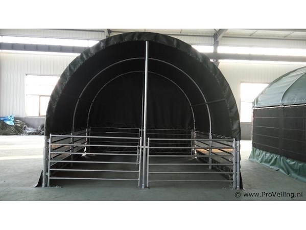 4m cattle tent; Whole Cover: 420g PVC cover; LET OP! KLEUR: WIT Size: W4* L4* H3.15 m Single Trussed, Galvanized tube frame Arches: 60*1.8mm : Purlin: 40*1.5mm Fence: 40*1.2mm With whole cover