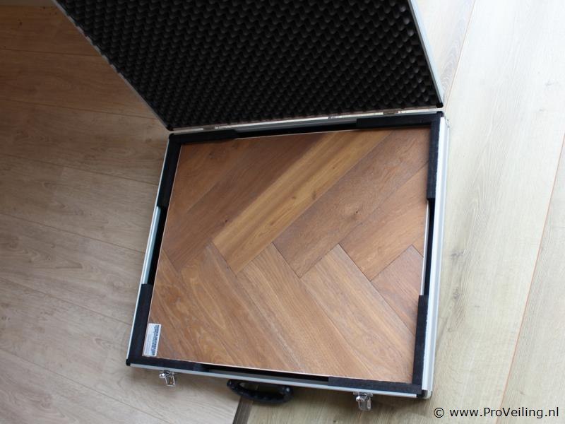 Productnaam: Showkoffer Model: Showkoffer met vloermonster Conditie: Nieuw Bijzonderheden: Productbeschrijving: Merk: Hollandsche Vloeren Productnaam: Showkoffer Type: Presentatiekoffer met vloermonsters Model: 75 × 63 × 10,5 cm (l × b × h) Conditie: Showroommodel Showkoffer met vloermonsters – Hollandsche Vloeren – 75 × 63 × 10,5 cm Degelijke aluminium presentatiekoffer van Hollandsche Vloeren, afmetingen 75 × 63 × 10,5 cm. Voorzien van vloermonsters in visgraatmotief, ideaal voor demonstraties bij klanten of in de showroom. Stevig uitgevoerd met handgreep en sluitingen, gemakkelijk mee te nemen. Conditie: Showroommodel