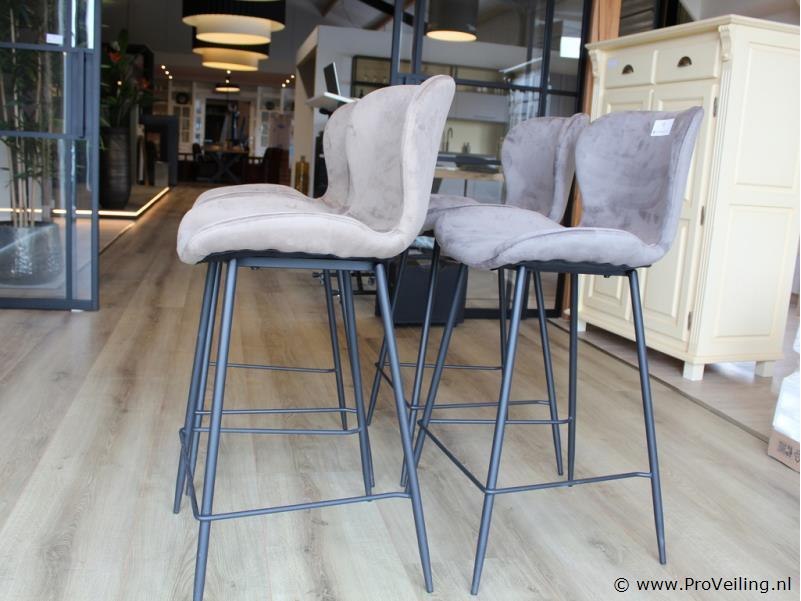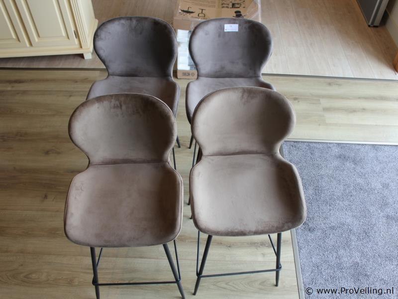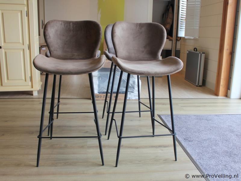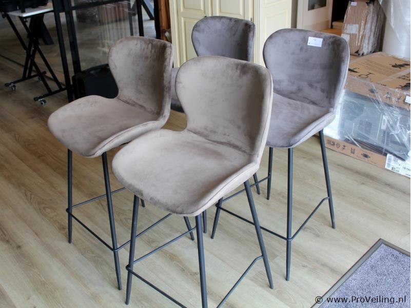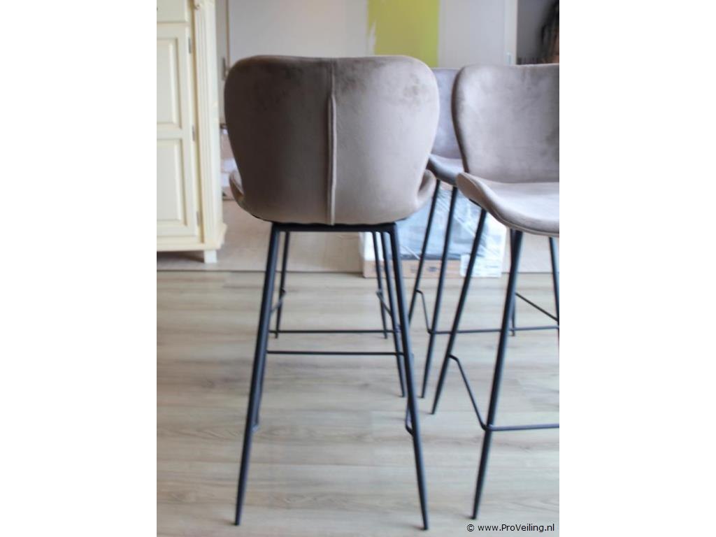 Productnaam: Set van 8 barkrukken Type: Barkrukken met rugleuning Uitvoering: Stoffen zitting met metalen onderstel Aantal: 2 sets van 4 krukken (8 krukken totaal) Ter waarde van: € 2440,- Kleur/uitvoering: Verkrijgbaar in 4 kleuren (o.a. taupe / grijsbruin) met zwart frame Omschrijving: Set van vier moderne barkrukken met zachte, fluweelachtige stoffering en een comfortabel gevormde zitting met lage rugleuning. De barkrukken zijn uitgevoerd met een slank zwart metalen onderstel en vaste voetensteun. Geschikt voor gebruik aan een kookeiland of bar en passend in moderne en industriële interieurs. Het betreft 2 sets van 4 krukken, in totaal 8 barkrukken. Conditie: Gebruikt, in nette staat