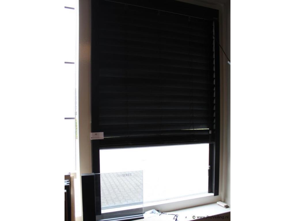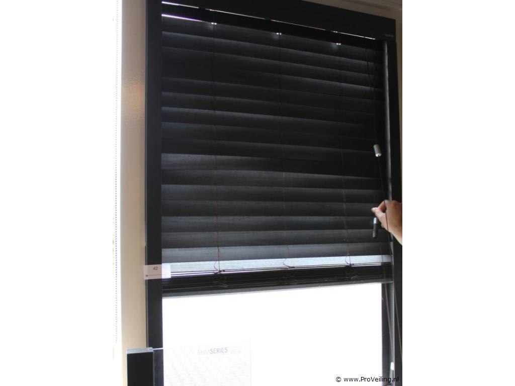 Productnaam: Sunway houten jaloezie Afmetingen: ca. 85 × 133 cm Conditie: Showroommodel Productbeschrijving: Sunway houten jaloezie uitgevoerd in zwart gebeitst eiken. Bijzonderheden: U dient deze kavel zelf te demonteren.