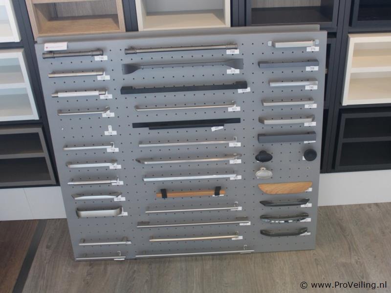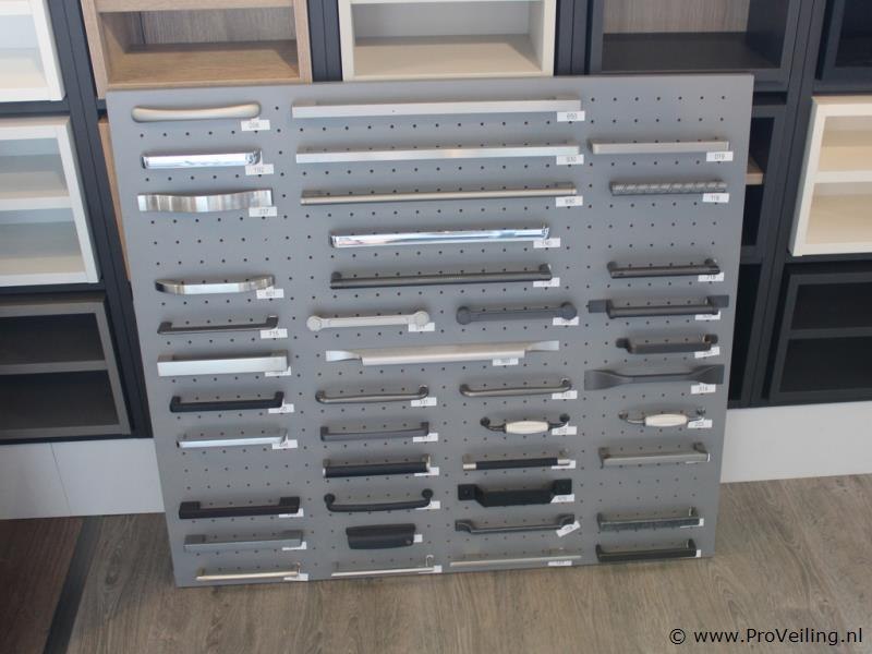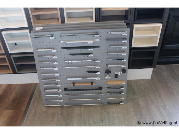 Productnaam: Monsterborden met grepen en knoppen Aantal: 4 borden Conditie: Showroom gebruikt Bijzonderheden: Compleet met diverse keuken- en meubelgrepen Productbeschrijving: Set van 4 overzichtelijke monsterborden met een grote variatie aan meubel- en keukengrepen en knoppen in verschillende stijlen en afwerkingen. Geschikt als showroom- of presentatieborden en ideaal als keuzehulp bij keuken- en meubelprojecten.