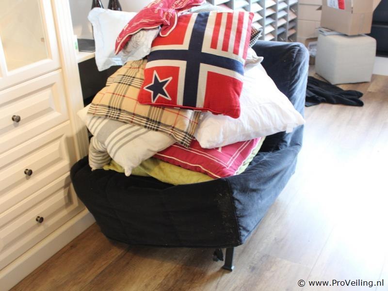 Productnaam: Opklapbed met kussens Conditie: Gebruikt Bijzonderheden: Inclusief diverse kussens Productbeschrijving: Handig opklapbed met zwarte stoffen bekleding, geleverd inclusief een aantal sier- en slaapkussens. Compact ontwerp waardoor het eenvoudig op te bergen en te verplaatsen is. Geschikt als logeerbed of extra slaapplek.