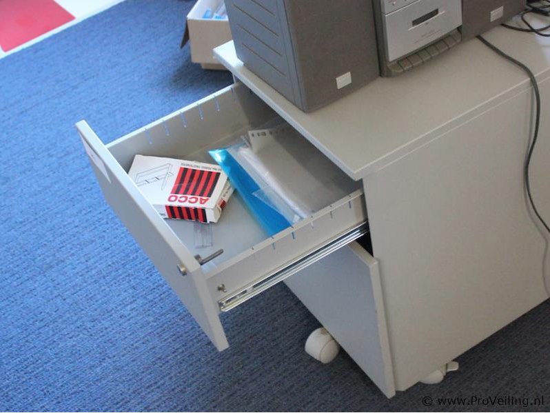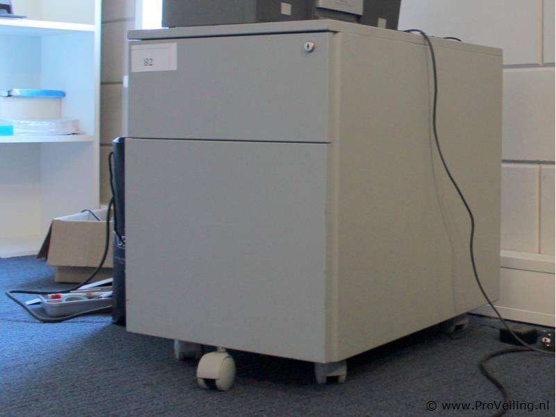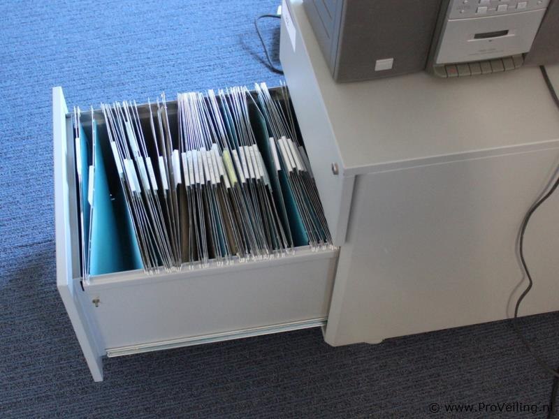 Verrijdbaar ladeblok / archiefkast – lichtgrijs Afmetingen 49 x 60 x 55 cm (b x d x h) Uitvoering metalen kast met 2 laden Bovenlade geschikt voor hangmappen (zoals afgebeeld) Onderlade ruime opberglade Mobiliteit verrijdbaar op wielen Kleur lichtgrijs Toepassing geschikt voor kantoor, archief of thuiswerkplek Conditie gebruikt (normale gebruikssporen)