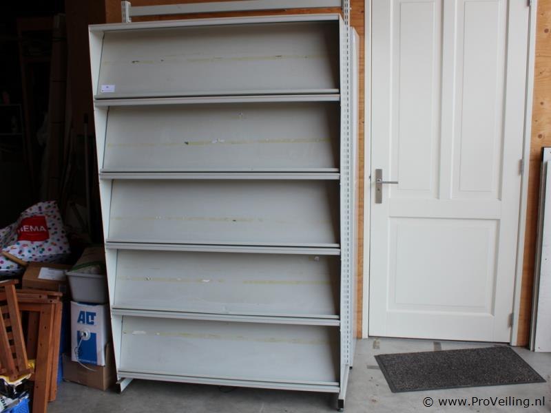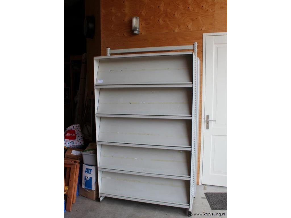 Productnaam: Metalen lectuurkast Productbeschrijving: Stevige metalen kast met een open uitvoering, voorzien van 5 legplanken. Geschikt voor het opbergen en presenteren van lectuur, mappen of ander materiaal. Dankzij de open vorm is de inhoud goed zichtbaar en eenvoudig toegankelijk. Materiaal: Metaal Aantal legplanken: 5 Afmetingen: ca. 124 × 213 × 45 cm Conditie: Gebruikt