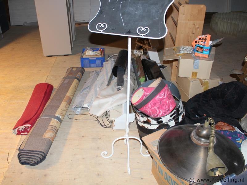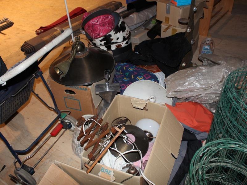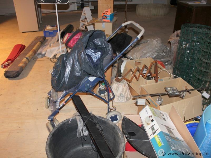 Complete zolderopruiming – diverse goederen en materialen Inhoud grote gemengde partij afkomstig van zolderopruiming Inclusief gedemonteerde kast met schuifdeuren en panelen Inclusief 3 dozen met nieuwe afvalzakjes voor in de auto Inclusief diverse lampen en armaturen Inclusief diverse rollen tapijt en matten Inclusief rol kunststof gaas / tuingaas Inclusief isolatiemateriaal op rol Inclusief flexibele installatiebuis / mantelbuis Inclusief Big Bag frame ca. 100 × 100 × 100 cm (gedemonteerd) Inclusief plantenspuiten en diverse huishoudelijke artikelen Inclusief decoratie, dozen met diverse inhoud en kleine gebruiksartikelen Conditie gemengd (nieuw en gebruikt) Opmerking complete partij zoals zichtbaar op de foto’s, koper dient alles mee te nemen Opmerking 2