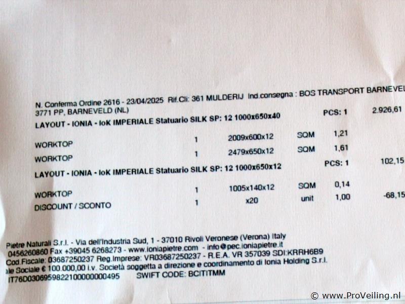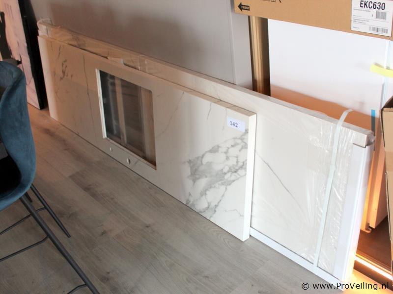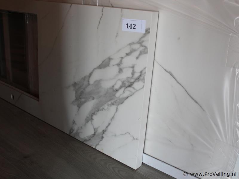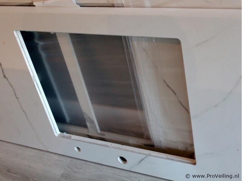 Design keukenwerkblad / keukenblad – Ionia Imperiale Statuario Silk – op maat gemaakt Luxe keramisch keukenwerkblad uitgevoerd in het decor Imperiale Statuario Silk met marmerlook. Het blad is speciaal op maat geproduceerd voor een keukenopstelling en voorzien van uitsparing voor een kookplaat. Het werkblad bestaat uit meerdere delen voor een hoekopstelling en is geschikt voor vlak- of onderbouw montage van een kookplaat. Uitvoering Materiaal: Ionia Imperiale Statuario Silk (marmerlook) Afwerking: Silk / mat oppervlak Kleur: wit met grijze marmerader Opstelling: hoekwerkblad Voorzien van uitsparing voor kookplaat (o.a. geschikt voor Miele KM7879-FL volgens tekening) Voorbereid voor vlakke inbouw (aanpasbaar volgens tekening) Afmetingen volgens productieblad Werkbladdeel 1: ca. 2479 × 650 × 12 mm Werkbladdeel 2: ca. 2009 × 600 × 12 mm Extra deel: ca. 1005 × 140 × 12 mm Totale opstelling volgens tekening ca. 247,9 × 265,9 cm (hoekopstelling) Kenmerken Luxe marmerlook design – Hoogwaardig keukenwerkblad – Slijtvaste en onderhoudsvriendelijke afwerking – Geschikt voor moderne keukens – Voorzien van kookplaatuitsparing – Ideaal voor renovatie of maatwerkproject. Opmerking Werkblad wordt verkocht zoals afgebeeld. Controleer maatvoering en uitsparingen voor montage in eigen situatie. Adviesprijs: € 2.900 |