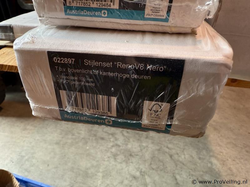 Productnaam: Stijlenset zonder bovenlicht Merk: AustriaDeuren Model: RenoV8 Nero (022905) Uitvoering: Zonder bovenlicht, inclusief dorpels Geschikt voor deurbreedte: ca. 83 cm Wanddikte: 100 mm Materiaal: FSC® gecertificeerd hout Conditie: Nieuw in verpakking Adviesprijs: € 318,00