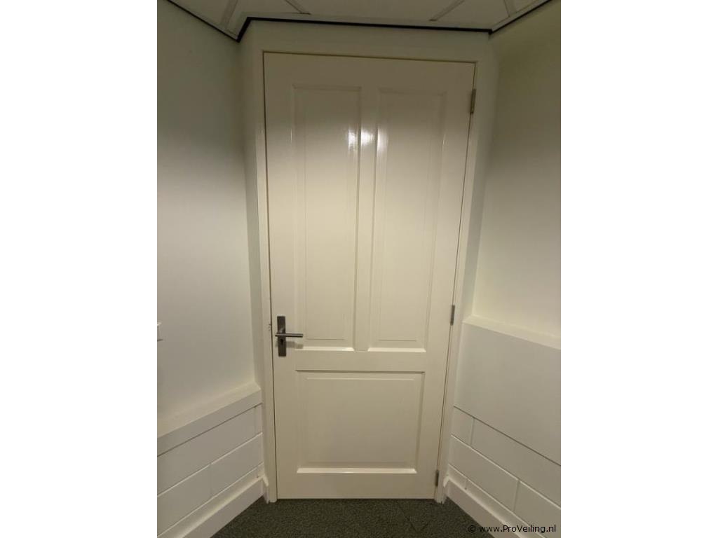 Complete kantoor-/ruimteconstructie incl. wanden, plafonds, deuren, verlichting en raamafwerking Omschrijving Complete ingebouwde kantoor-/ruimteconstructie zoals zichtbaar op de foto’s, inclusief wanden, deuren, systeemplafond met verlichting, vloerafwerking en raamafwerking. De ruimte is opgebouwd binnen een grotere halconstructie en bestaat uit meerdere afgesloten ruimtes en een gangzone. Kenmerken • Wanden afgewerkte binnenwanden met schilderwerk en plinten • Deuren meerdere binnendeuren inclusief kozijnen en RVS deurklinken • Plafond systeemplafond met plafondplaten en geïntegreerde spotverlichting • Verlichting diverse inbouwspots in het systeemplafond • Vloer vloerafwerking met tapijttegels • Elektra diverse wandcontactdozen aanwezig in de wanden • Raam raam met geplisseerde raamverduistering / jaloezie • Opbouw ruimte opgebouwd binnen bestaande halconstructie (zie opbouwfoto’s) Uitbreiding Op de laatste foto’s is de uitbreiding van deze ruimteconstructie zichtbaar zoals deze tijdens de opbouwfase is gerealiseerd. Demontage Koper dient deze constructie zelf te demonteren . Alle vrijkomende materialen dienen door koper te worden meegenomen en afgevoerd . Demontage en afvoer dienen plaats te vinden in week 17 . Complete kantoorruimteconstructie - Binnenwanden met afwerking - Meerdere binnendeuren met kozijnen en RVS beslag - Systeemplafond met inbouwspots - Tapijttegelvloer - Wandcontactdozen - Raam met geplisseerde raamverduistering - Zelf demonteren en afvoeren in week 17