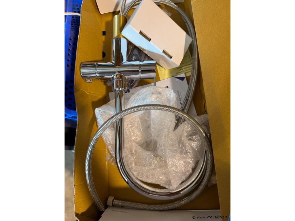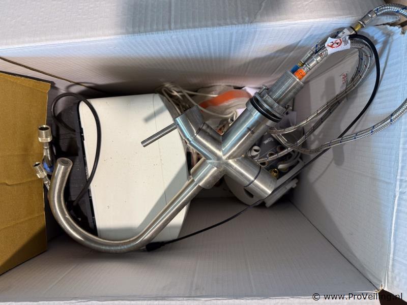 Merk: Floww Productnaam: Premium3 Twist Round met Combi-XL boiler Type: 3-in-1 kokendwaterkraan set Model: 70-30-001 Uitvoering: Round, chroom Omschrijving: Complete Floww Premium3 Twist Round 3-in-1 kokendwaterkraan set, bestaande uit een chroomkleurige kraan en een Combi-XL boiler. Levert direct koud, warm en kokend water (100 °C) uit één kraan. De Combi-XL boiler is geschikt voor zowel kokend als warm water en heeft een capaciteit van circa 7 liter kokend water en 15 liter warm water. Voorzien van kindveilige bediening, geïsoleerde uitloop en druppelvrije werking. Wordt aangeboden als complete set zoals getoond. Conditie: Gebruikt