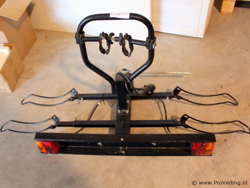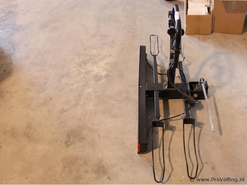 Fietsendrager voor trekhaak – geschikt voor 4 fietsen Stevige metalen fietsendrager voor montage op een trekhaak. De drager biedt plaats aan maximaal vier fietsen en is voorzien van framehouders, wielgoten en geïntegreerde verlichting met achterlichten. Geschikt voor vervoer van meerdere fietsen op auto of camper. Kenmerken Geschikt voor trekhaakmontage – capaciteit tot 4 fietsen – metalen constructie – voorzien van frameklemmen – wielhouders aanwezig – geïntegreerde achterverlichting – compacte en stevige uitvoering – gebruikte staat.