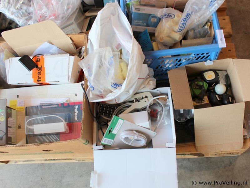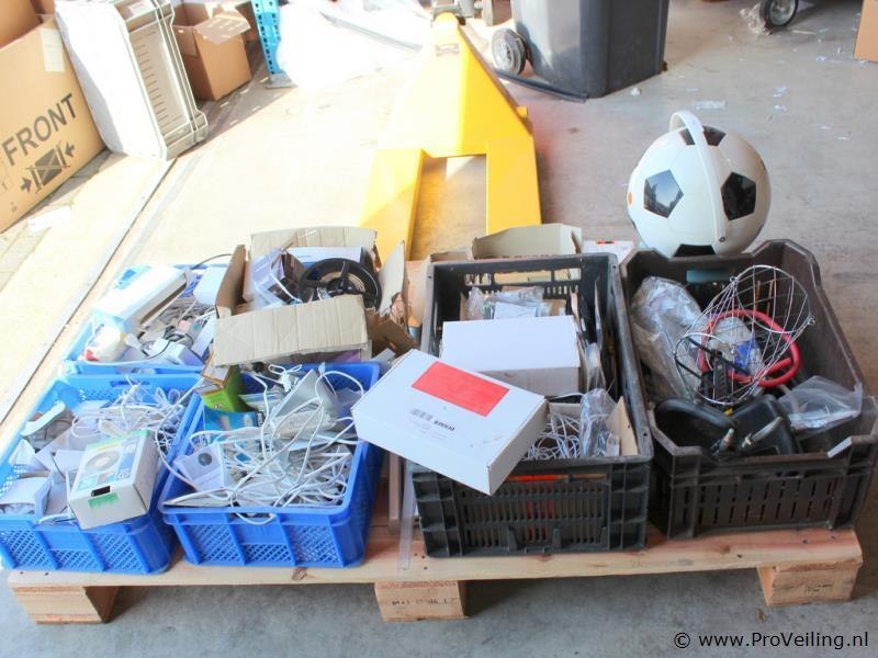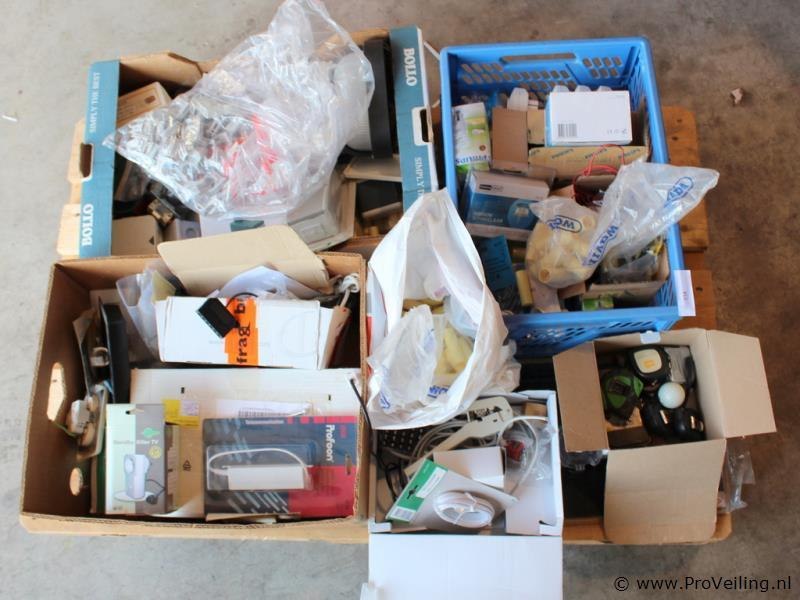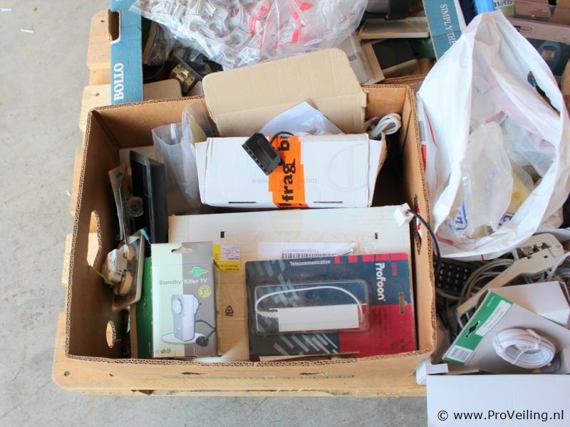 Grote partij elektra- en installatiemateriaal Gemengde partij met diverse elektra- en installatiematerialen afkomstig uit voorraadopruiming. De partij bestaat uit meerdere dozen en kratten met onder andere schakelmateriaal, kabelaccessoires, verlichting, meetlinten en diverse kleine installatiematerialen. Ideaal voor installateurs, hobbyisten of wederverkopers. Inhoud o.a. Diverse meetlinten Inbouwschakelaar Philips lamp(en) Kabelverbindingsmof / kabelaccessoires Wandcontactdozen en schakelmateriaal Stekkers en koppelingen Verlichtingsarmatuur Koelbox in vorm van voetbal (zonder snoer) Diverse bevestigings- en installatiematerialen Kenmerken Gemengde partij – elektra en installatiemateriaal – diverse merken – deels nieuw in verpakking – verschillende kleine onderdelen – verkoop als complete partij. Opmerking Verkoop als partij zoals afgebeeld. Werking en volledigheid niet getest of gecontroleerd.