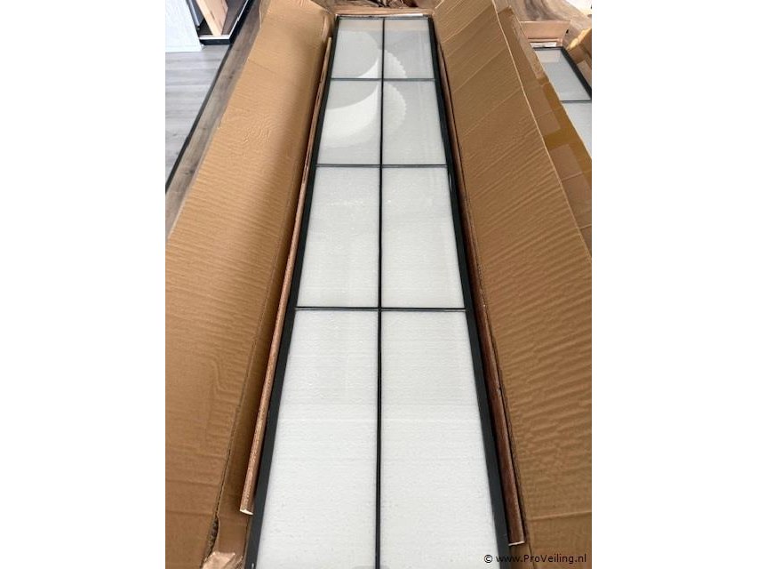 Glas-in-lood panelen blank glas (2 stuks) Omschrijving Set glas-in-lood panelen uitgevoerd in blank glas met metalen roedeverdeling. Geschikt voor toepassing in deuren, ramen of als decoratief glaspaneel. Kenmerken • Type glas-in-lood panelen • Uitvoering blank glas met roedeverdeling • Vakken 8 vakken per paneel • Aantal 2 stuks • Afmetingen ca. 299 × 1156 mm per paneel