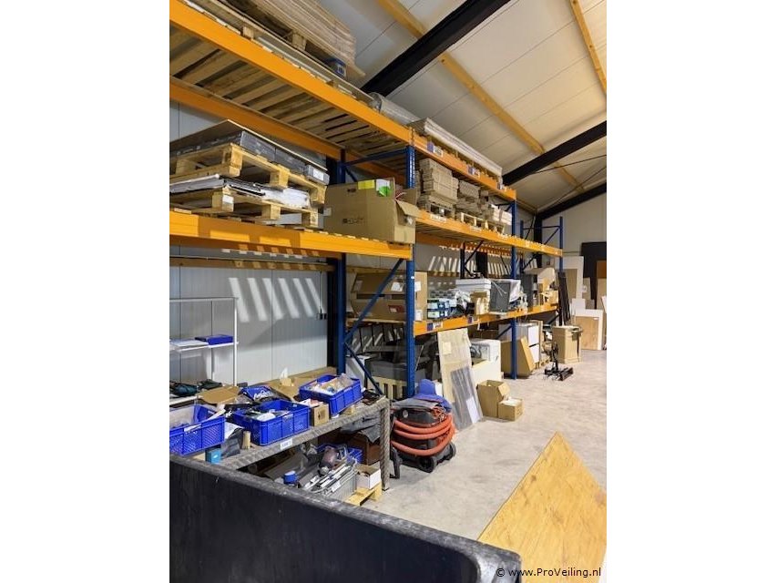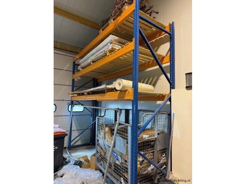 Palletstelling Nedcon PR Omschrijving Nette en schone palletstelling van het merk Nedcon type PR. Geschikt voor magazijnopslag. Wordt aangeboden exclusief de aanwezige inhoud en voorraad op de stelling. Kenmerken • Merk Nedcon • Type PR palletstelling • Staanders 6 stuks ca. 3550 × 1100 × 100 mm (blauw) • Voeten 12 stuks • Liggers 20 stuks Nedcon PR ca. 3597 × 140 × 50 mm (oranje) • Borgpennen 40 stuks • Vloeren 10 houten vlonders ca. 3500 × 1100 mm (lat om lat, ca. 970 mm) • Opmerking exclusief inhoud / voorraad • Afhalen ophalen op afspraak in week 17 Ter waarde van: € 1.200