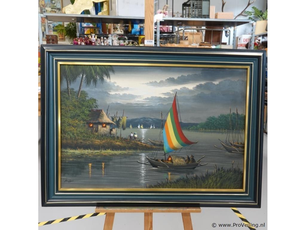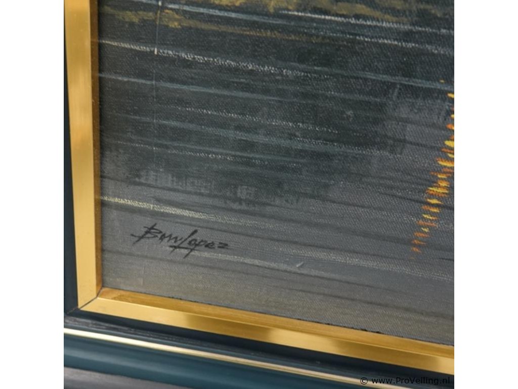 Op doek en in houten lijst. H80cm/B110cm/2300Gr. Lees a.u.b. ook de extra veilinginformatie voor deze veiling. G-E-E-N transport of bezorging door Proveiling mogelijk. Eventueel transport of bezorging alleen door u zelf te regelen via b.v. www.brenger.nl .