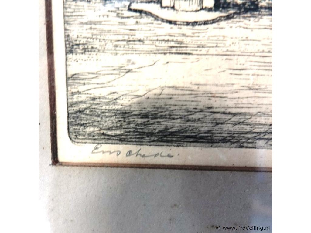 Antieke ets Nederlandse Hervormde kerk in Enschede. In passe-partout, achter glas en in houten lijst. H58cm/B44cm/1800Gr. Lees a.u.b. ook de extra veilinginformatie voor deze veiling. G-E-E-N transport of bezorging door Proveiling mogelijk. Eventueel transport of bezorging alleen door u zelf te regelen via b.v. www.brenger.nl .