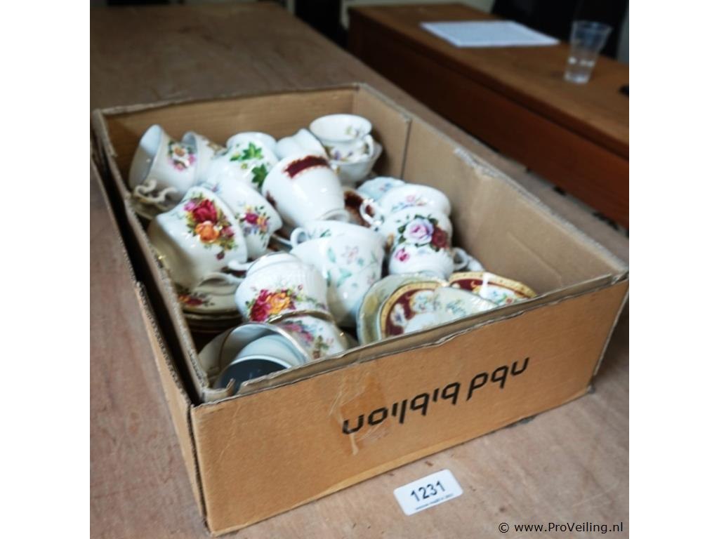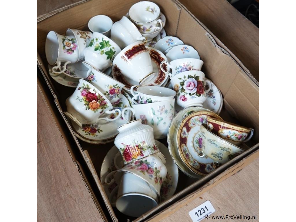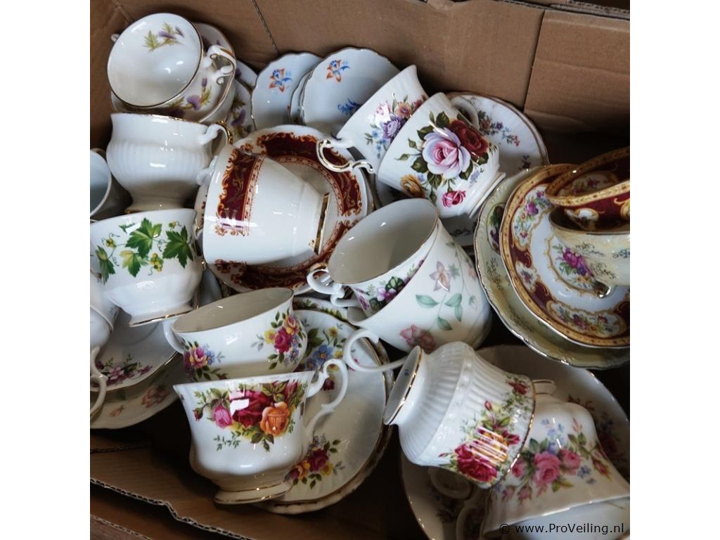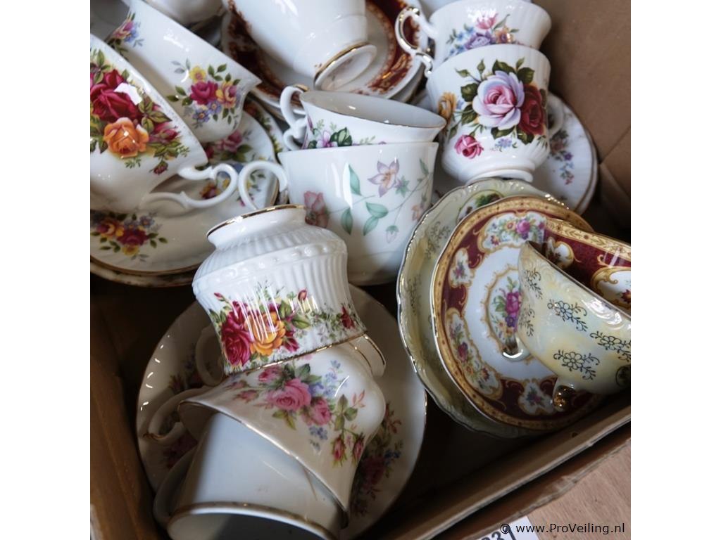 Grote partij engels porseleinen kop en schotels