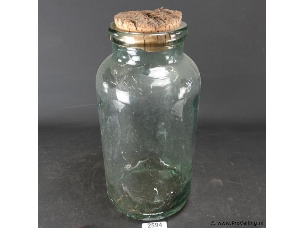 Antieke dikglazen pot met kurk
