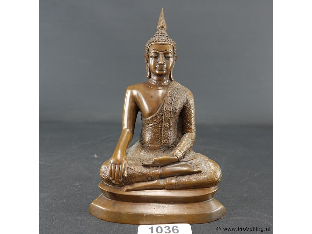 Bronzen thaise boeddha in de bhumisparsha mudra-houding
