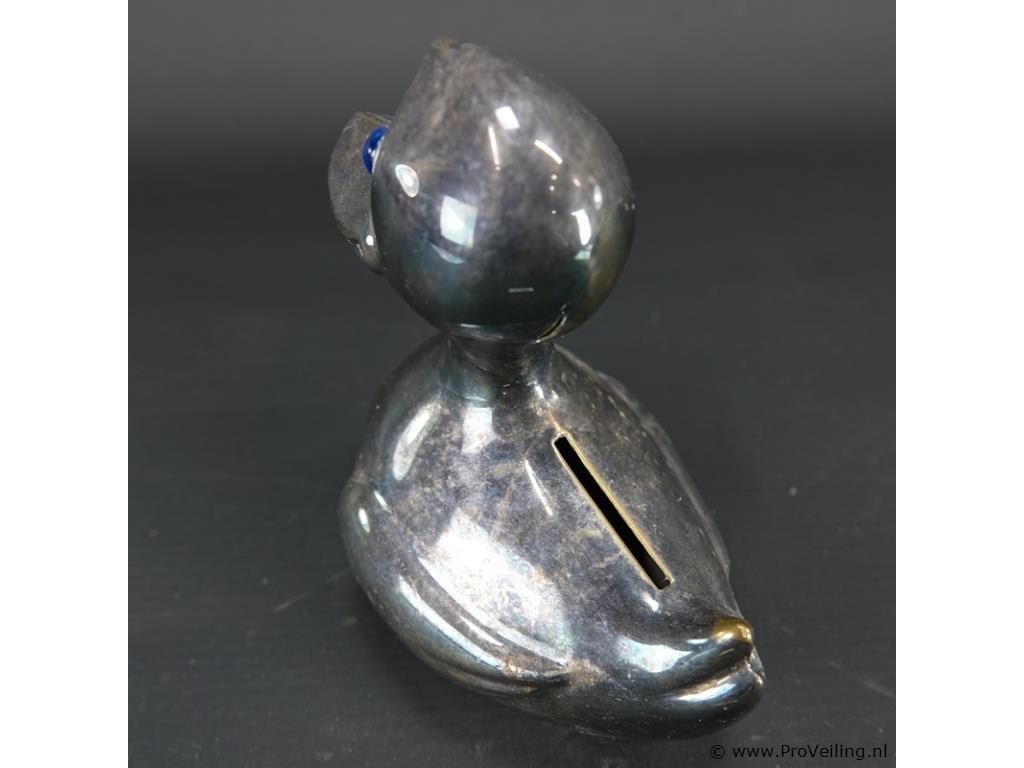 Verzilverde eend als spaarpot