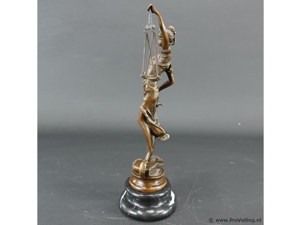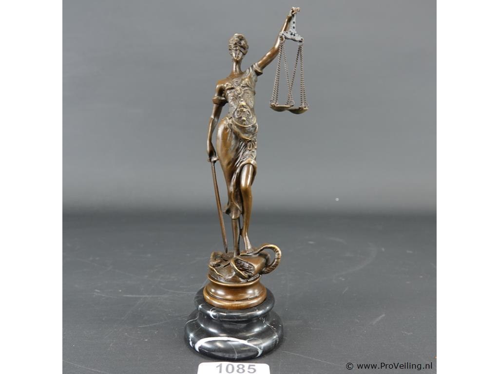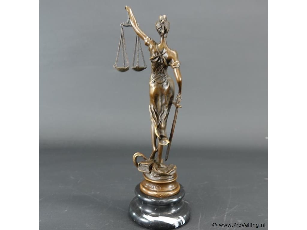 Bronzen vrouwe justitia op marmeren basement