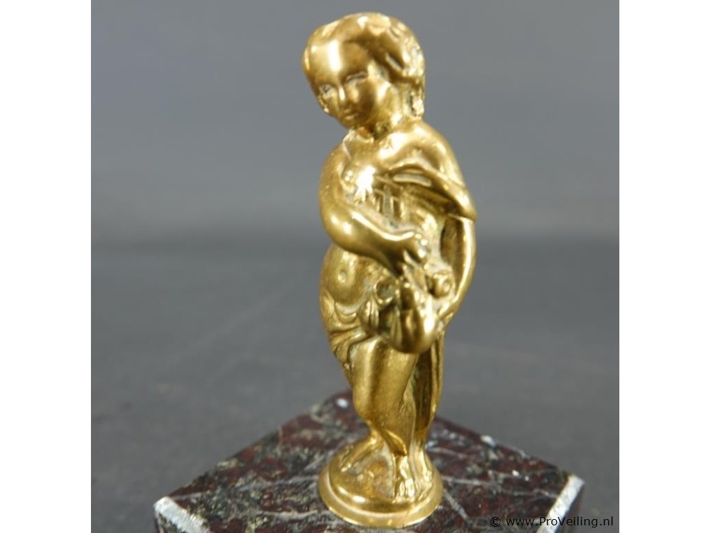 Koperen figuur op stenen basement