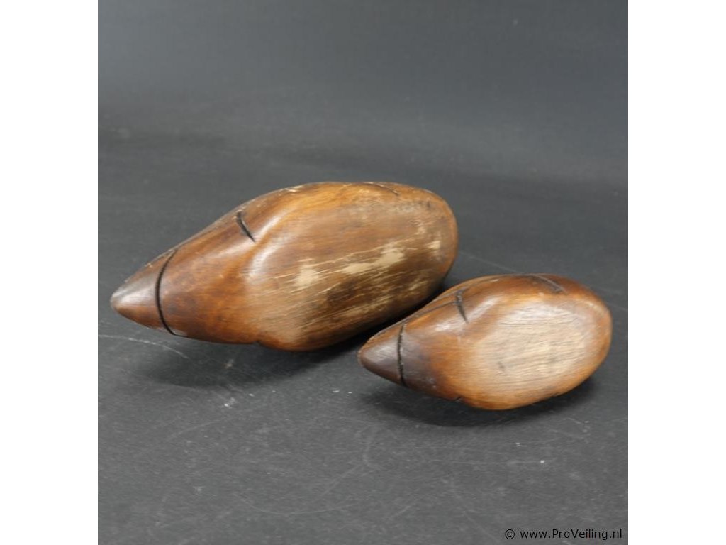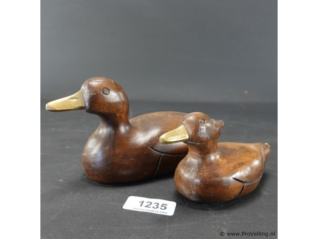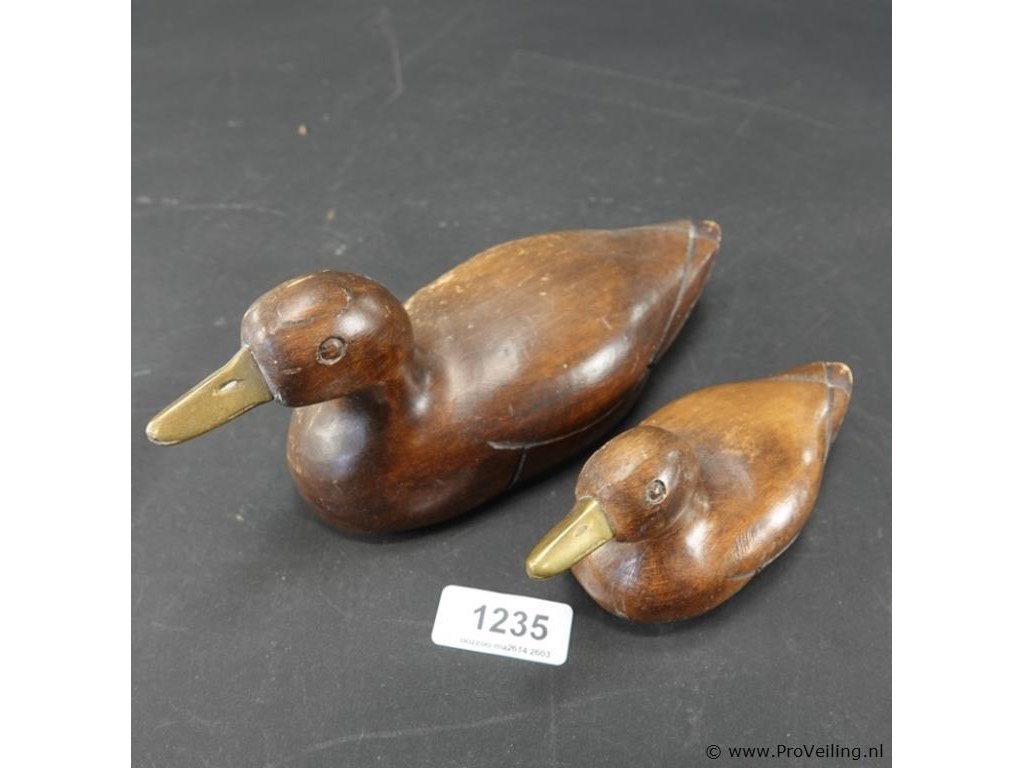 2 houten eenden met bronzen snavel