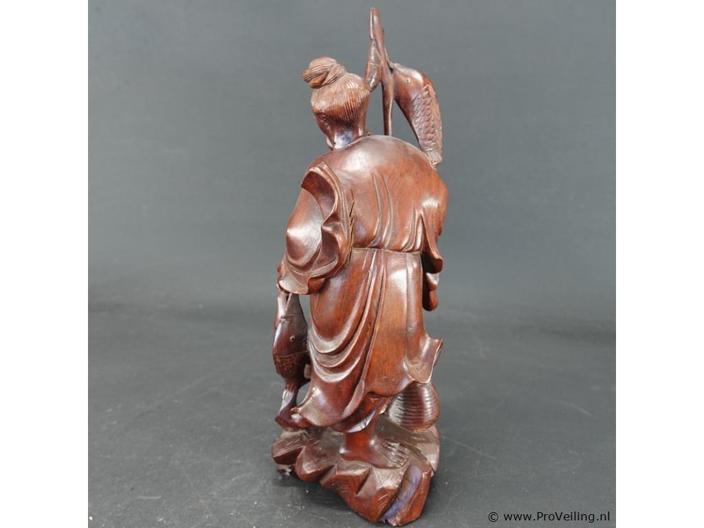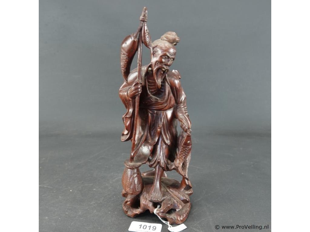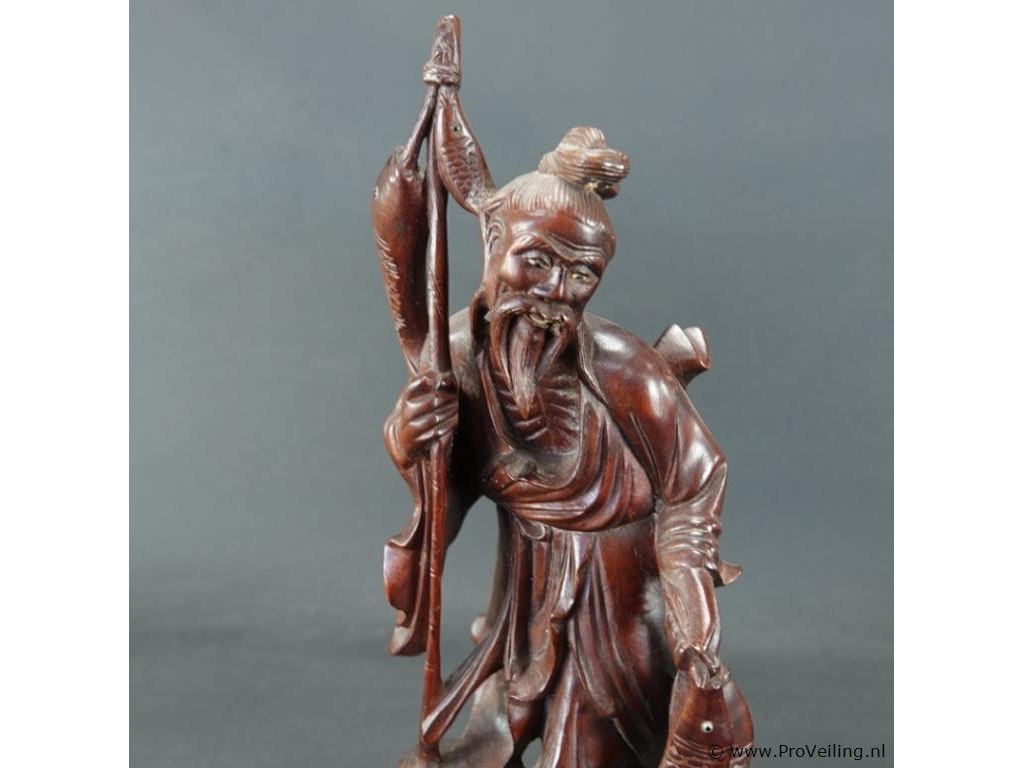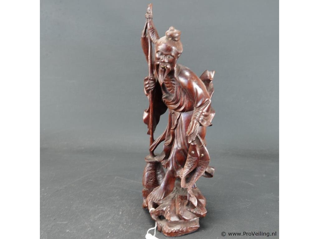 Oude/antieke in rozenhout gesneden chinese visserman