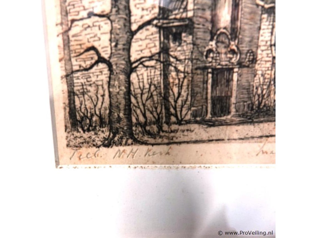 In passe-partout, achter glas en in houten lijst. H34cm/B23cm/326Gr. Dit betreft een tijdens transport kwetsbaar product! Uw transportrisico voor deze kavel is zeker in combinatie met andere kavels hoog. Lees daarom a.u.b. ook de extra veilinginformatie voor deze veiling!.