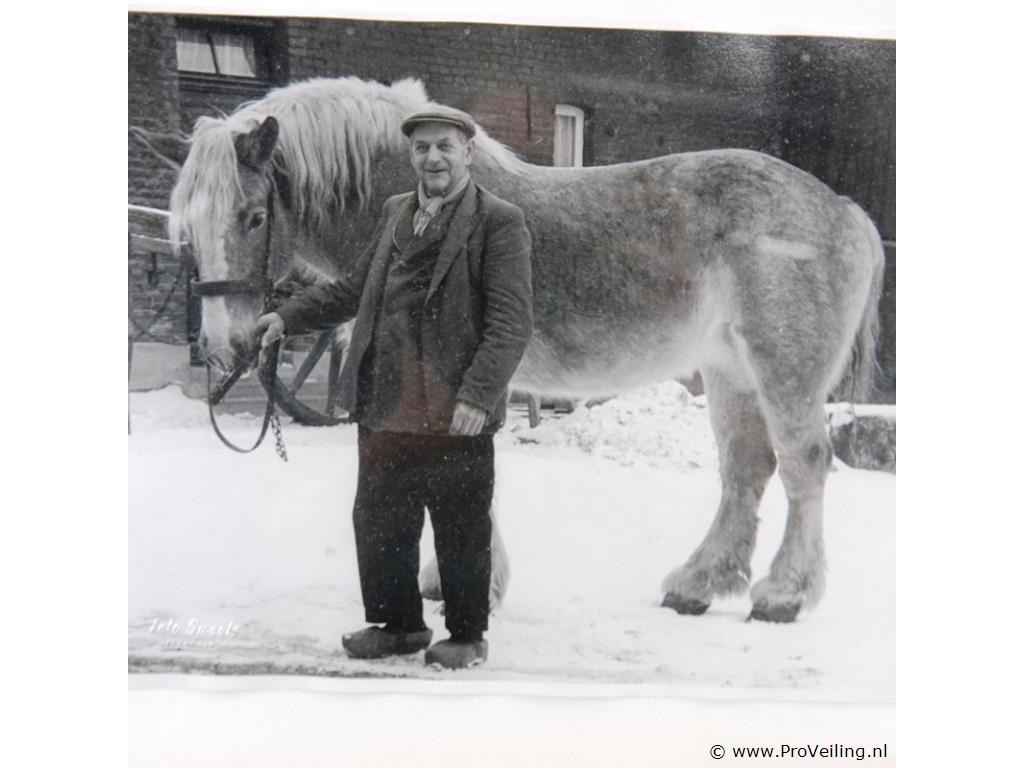 Historische foto van boer met trekpaard