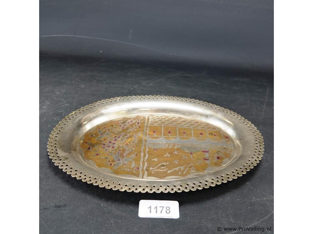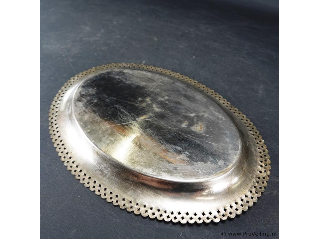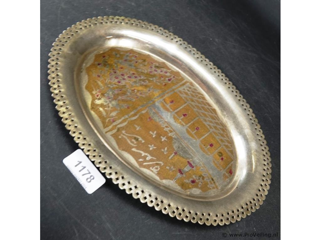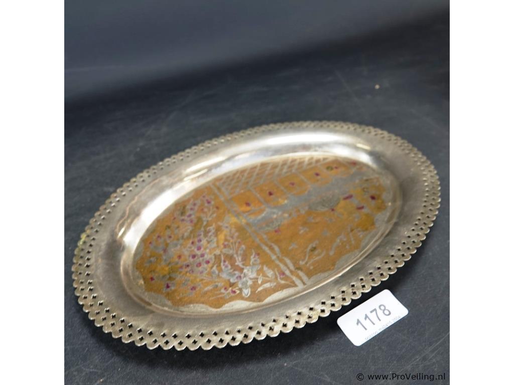 Verzilverde schaal met decor