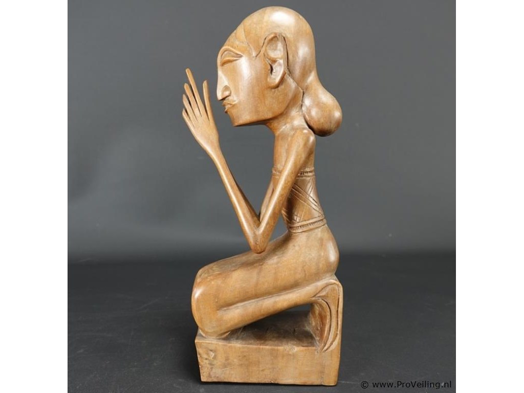 Antiek in teakhout gesneden indisch beeld