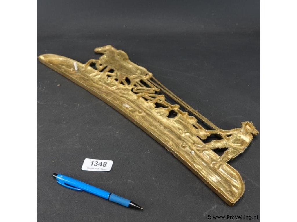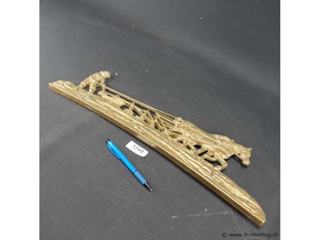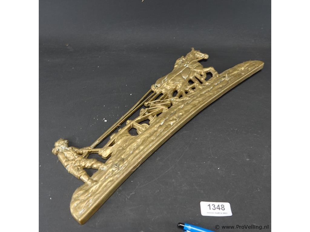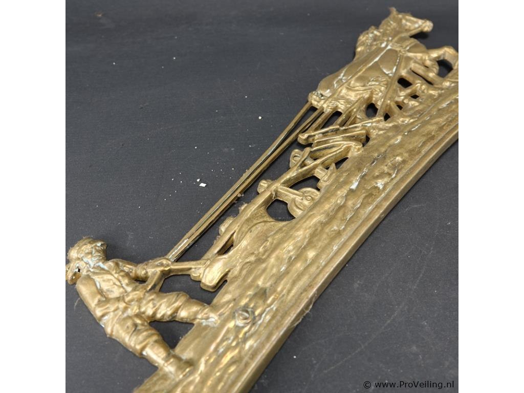 Koperen plaque "en de boer hij ploegde voort". L54cm/1080Gr. Lees a.u.b. ook de extra veilinginformatie voor deze veiling!.
