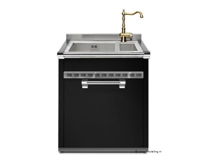 ; afmetingen ca. 70x66x90cm; kleur zwart; nieuw; excl. afgebeelde kraan; winkelverkoopprijs ca. €3927,-. Attentie: deze kavel is onderdeel van een combi-kavel (1301608-A), indien het bod op de combi-kavel hoger ligt dan alle individuele biedingen, komen deze automatisch te vervallen. De Steel A7S-L2 is een stijlvolle spoelunit uit de klassieke Ascot-serie, ontworpen om perfect aan te sluiten bij de Ascot-fornuizen en werkbladen. Deze 70 cm brede module combineert functionaliteit met elegantie, voorzien van een geïntegreerde spoelbak en traditioneel vormgegeven details zoals chromen knoppen en sierlijke belijning. Door zijn compacte formaat is deze spoelunit ideaal voor kleinere keukens of als uitbreiding naast een fornuis, en dankzij de hoogwaardige materialen en afwerking sluit hij naadloos aan bij het kenmerkende Ascot-design.