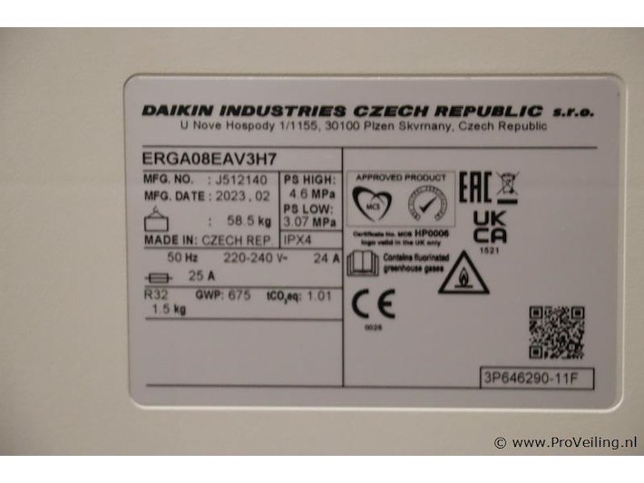 Daikin erga-evh7 lucht-water warmtepomp buitenunit 08eav3h7