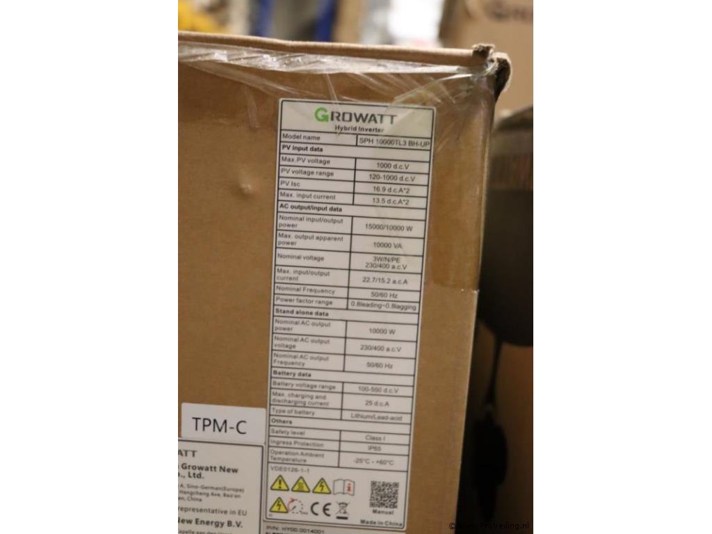 ; nieuw in doos; winkelverkoopprijs ca. € 1691,-. De Growatt SPH 10000TL3-BH-UP omvormer is bedoeld voor het opslaan van stroom in batterijen. De batterijen zijn los te bestellen en worden niet standaard meegeleverd. Dankzij dit handige systeem is het PV-systeem niet afhankelijk van het elektriciteitsnet en kan het voor zichzelf zorgen. De Growatt SPH-serie hybride omvormers werken samen met het Growatt ARK-HV accusysteem. Omvormer efficiëntie De hybride omvormer heeft een hoog rendement van 97,5% en kan daardoor met het PV-systeem een hoog energierendement leveren. De omvormer is een van de best verkochte Chinese omvormers ter wereld. Met een opbergbare oplossing en dynamische besturing beheert u de omvormer volledig zelf. De lading en schijfboogtijd zijn instelbaar, waardoor u volledige controle over de omvormer heeft Geen ventilator en zonder transformator De omvormer bevat geen ventilator en transformator. Daarom is het de perfecte keuze voor uw residentiële PV-installatie. De omvormer maakt gebruik van natuurlijke koeling, wat hem een extra lange levensduur geeft. Hierdoor kan op termijn meer energie worden opgewekt met de PV-installatie.