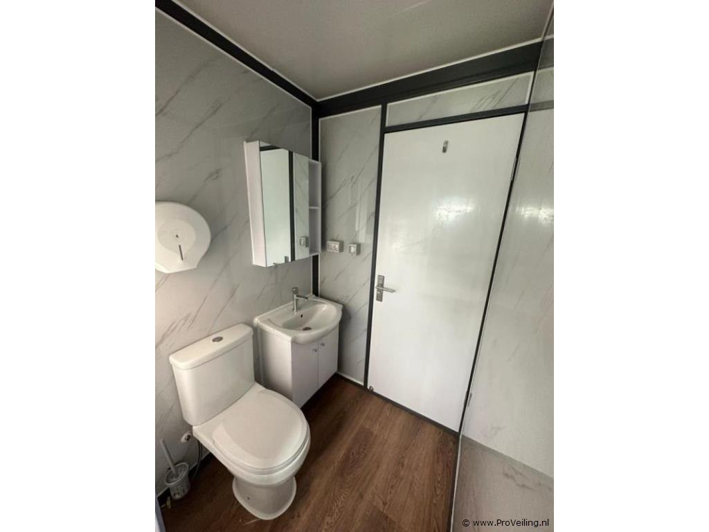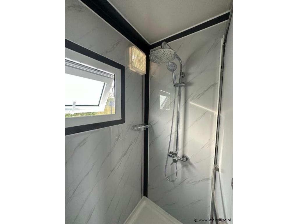 Type: Compleet Deluxe (19ft*20ft) Aantal ramen: 9 Keukenblok: true Toilet: true Eigen gewicht: 3550 kg Totale afmeting Lengte: 5860 mm Totale afmeting Breedte: 6220 mm Totale afmeting Hoogte: 2550 mm Additionele informatie: Voorzien van geïsoleerde wanden en dak; hoek keuken met boven kastjes; badkamer met toilet en regendouche; wastafel met spiegelkast en toiletgarnituur; vinyl vloer; ventilatiesysteem (230 Volt aansluiting); kunststof kozijnen met dubbele beglazing; afwateringsgoot; bordes; water, stroom en afvoer kan makkelijk aangesloten worden is voorbereid; afsluitbaar met sleutel en knopcilinder; afmetingen ingeklapt 5860x2110x2550 mm (transport afmetingen); ongebruikt