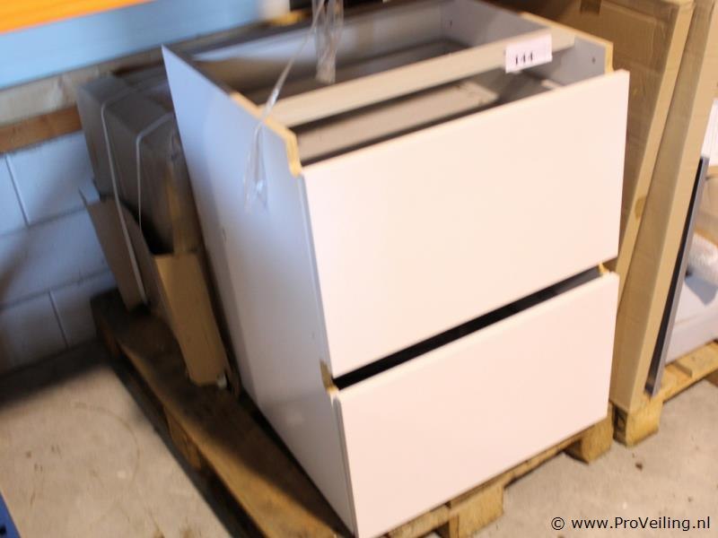 Keuken onderkast met lades – hoogglans wit Keukenkast met twee brede ladefronten in hoogglans witte uitvoering. Geschikt als onderkast in een keukenopstelling of voor gebruik in werkruimte of bijkeuken. De kast is voorzien van een modern greeploos frontdesign. Kenmerken Breedte ca. 60 cm – diepte ca. 60 cm – hoogte ca. 81 cm – hoogglans wit front – onderkast met ladefronten – geschikt voor keukeninstallatie of vervanging van bestaande kast. Opmerking Onderste lade/korf zit los en dient opnieuw bevestigd of gemonteerd te worden. Verkoop zoals afgebeeld.
