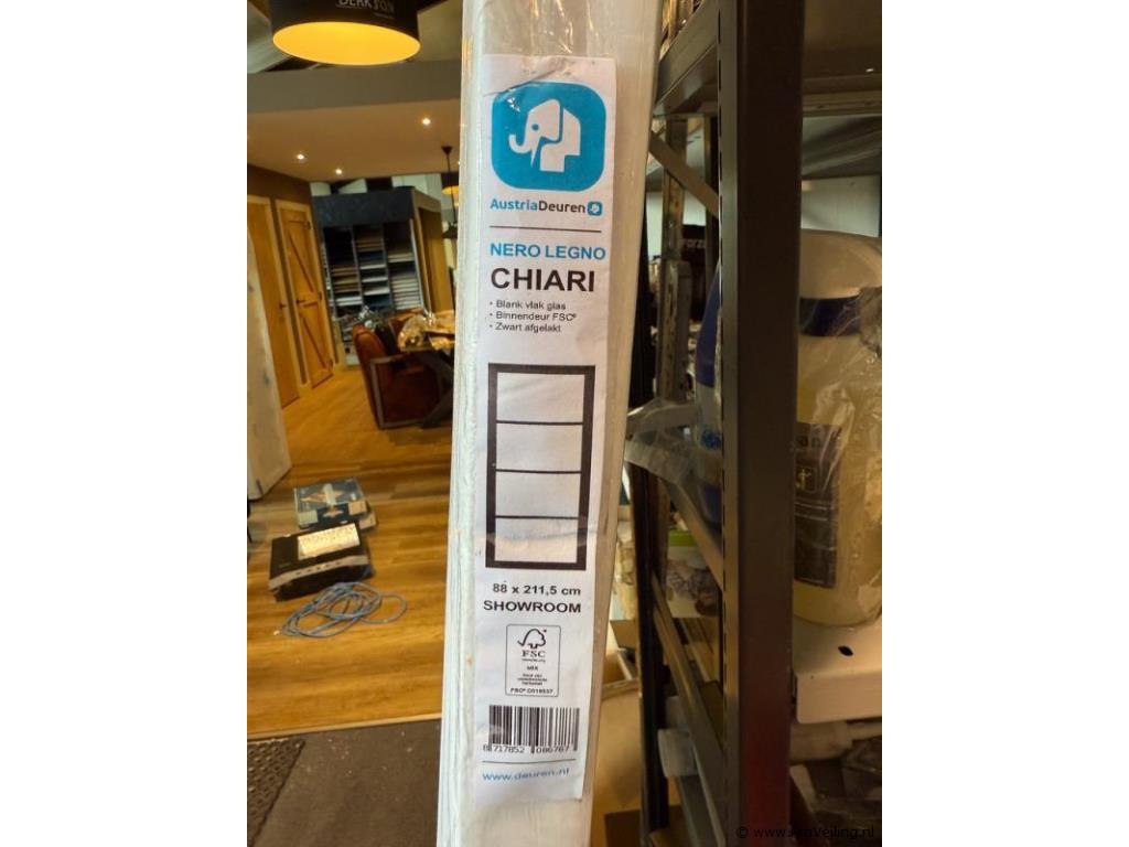 Productnaam: Binnendeur Conditie: Nieuw, nog in folie Merk: AustriaDeuren Model: Nero Legno CHIARI Afmeting: 88 × 211,5 cm Productbeschrijving: Moderne binnendeur met strak gelijnde glasverdeling, fabriek zwart afgelakt en voorzien van blank vlak glas voor een lichte en eigentijdse uitstraling. Uitgevoerd als los deurblad, FSC®-gecertificeerd hout. Bijzonderheden: Geleverd als los deurblad, exclusief hang- en sluitwerk, kozijn en rubbers.