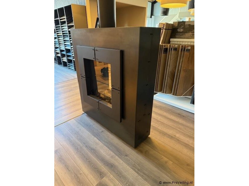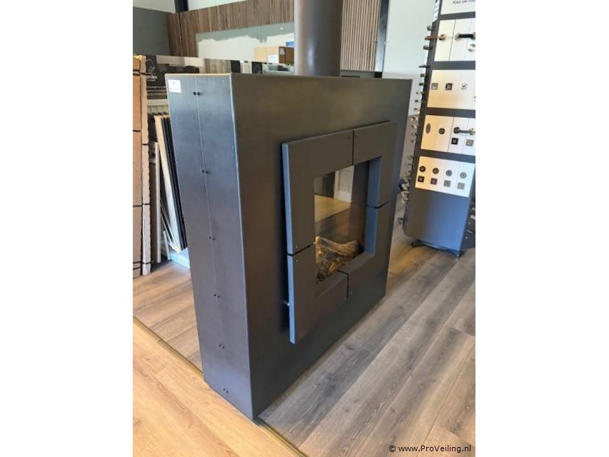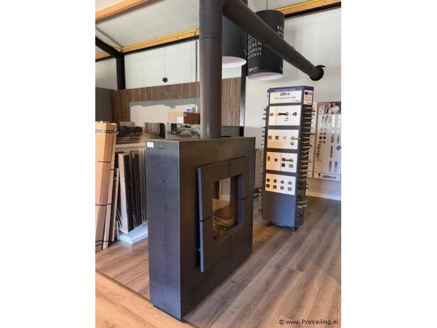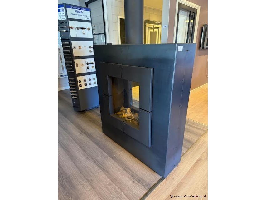 Productnaam: Vrijstaande gashaard Conditie: Showroommodel, gebruikt Ter waarde van: ca. € 6.140,00 (adviesprijs) Productbeschrijving: Vrijstaande gashaard uitgevoerd in mat zwart staal. Strak vormgegeven en geschikt als krachtig en stijlvol warmte-element voor diverse ruimtes. Voorzien van afstandsbediening voor eenvoudig bedieningsgemak en geleverd met compleet afvoersysteem. Afmetingen haard ca. 140 cm hoog × 125 cm breed × 41 cm diep Hoogte afvoerkanaal ca. 144 cm Lengte horizontaal gedeelte afvoer ca. 390 cm Diameter afvoerbuis ca. 20 cm Voorzien van afstandsbediening Met robuuste en industriële uitstraling, passend in een modern of loft-achtig interieur. Bijzonderheden: U dient deze kavel zelf te demonteren.