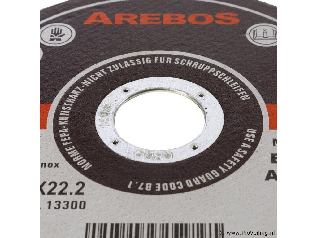 [Compatibiliteit] De AREBOS - doorslijpschijven zijn compatibel met alle gangbare modellen haakse slijpers. Met een schijfdiameter van 115 mm, een boringmaat van 22,2 mm en een dikte van 1mm zijn deze doorslijpschijven geschikt voor een groot aantal toepassingen. [Industriële kwaliteit] De hoogwaardige afwerking is direct merkbaar dankzij gelijkmatig verdeelde slijpkorrels en versterkt veiligheidsgaas. Materialen als ijzer, plaatstaal, metaal, staal en roestvrij staal kunnen probleemloos worden bewerkt. [Schoon en nauwkeurig] Doordat u kunt kiezen tussen voorwaartse en achterwaartse richting, kunt u flexibel een keuze maken op basis van de eisen van uw specifieke project. Ondanks de manier waarop droog doorslijpen werkt, wordt er bij het werken met de AREBOS-doorslijpschijven zeer weinig stof gegenereerd en het is bovendien zeer nauwkeurig. [Hoogste kwaliteits- en veiligheidsnormen] Onze doorslijpschijven voldoen aan de veiligheidsnormen van EN 12413 (de Europese norm 12413). Dit is getest en bevestigd door het materiaaltestinstituut van Hannover (MPA Hannover). [Robuust en veerkrachtig] Dankzij het hoogwaardige staalgaas zijn de doorslijpschijven van AREBOS extreem veerkrachtig, robuust en duurzaam. Met 13300 tpm en 80 m/s kunt u uw klusjes in huis in zeer korte tijd uitvoeren. Waarschijnlijk heeft elke klusser die met metaal werkt wel eens met doorslijpschijven gewerkt. Dankzij hun veelzijdige gebruik kunnen de schijven worden gebruikt voor het bewerken van een breed scala aan materialen. Ze kenmerken zich door een zuivere, nauwkeurige en soepele doorslijpmethode en zijn daarom een 'welkome helpende hand' bij het in- en doorslijpen van dunwandige buizen, balken, dunne metaalplaten en carrosserieplaten. De AREBOS-doorslijpschijven overtuigen door een goed slijpvermogen en een zeer lange levensduur. Daarnaast is er slechts zeer minimaal sprake van braamvorming. Zuiver slijpen en werken tot op de millimeter nauwkeurig is geen probleem met de doorslijpschijven van AREBOS. Onze doorslijpschijven voldoen aan de veiligheidsnormen van EN 12413 (de Europese norm 12413). Dit is getest en bevestigd door het materiaaltestinstituut van Hannover (MPA Hannover). Onze doorslijpschijven zijn geschikt voor alle gangbare haakse slijpers. Ze zijn van industriële kwaliteit en daarom een must voor uw werkplaats. Overtuig uzelf en ontdek de premium kwaliteit en afwerking van AREBOS-producten!