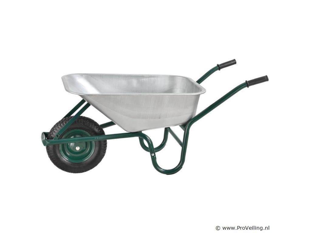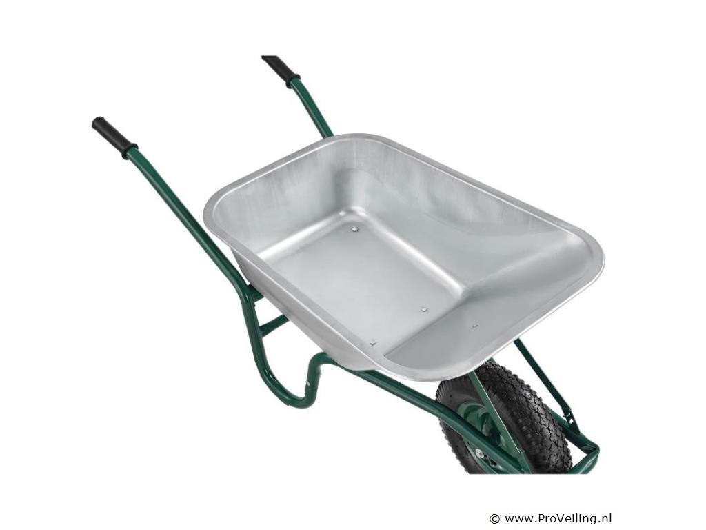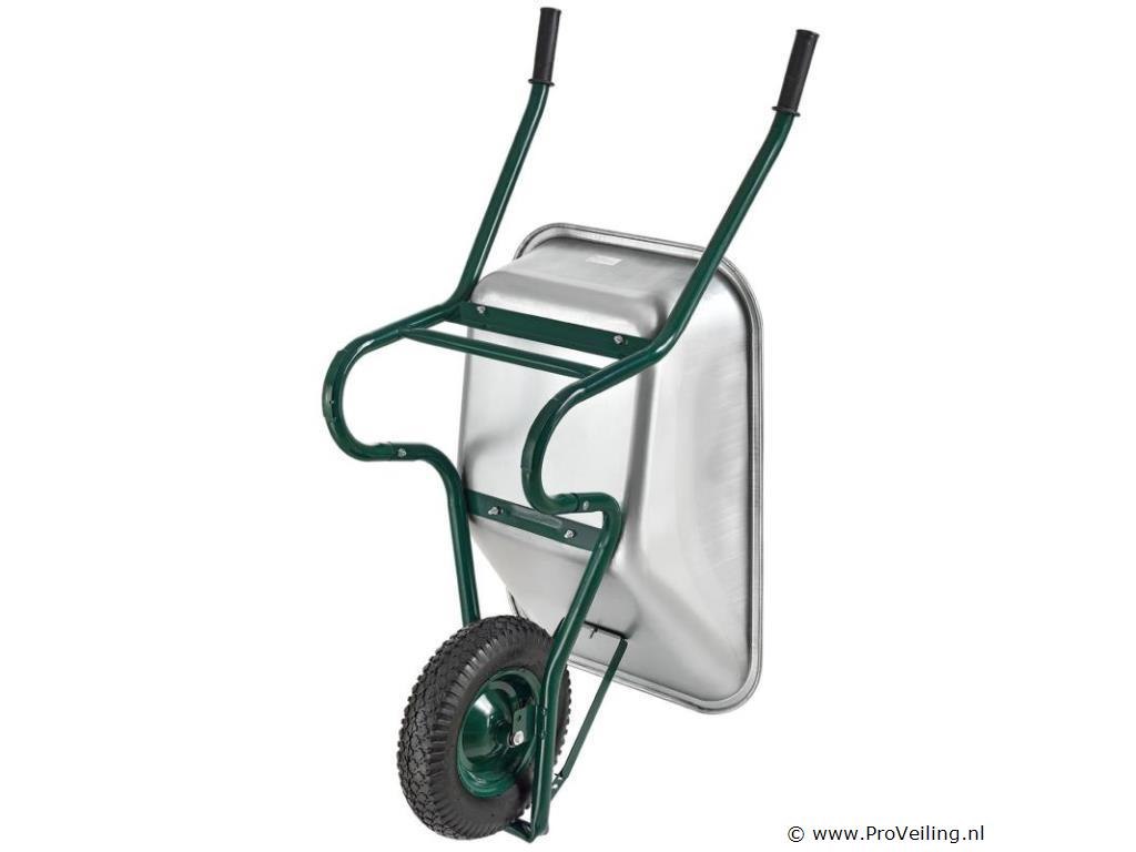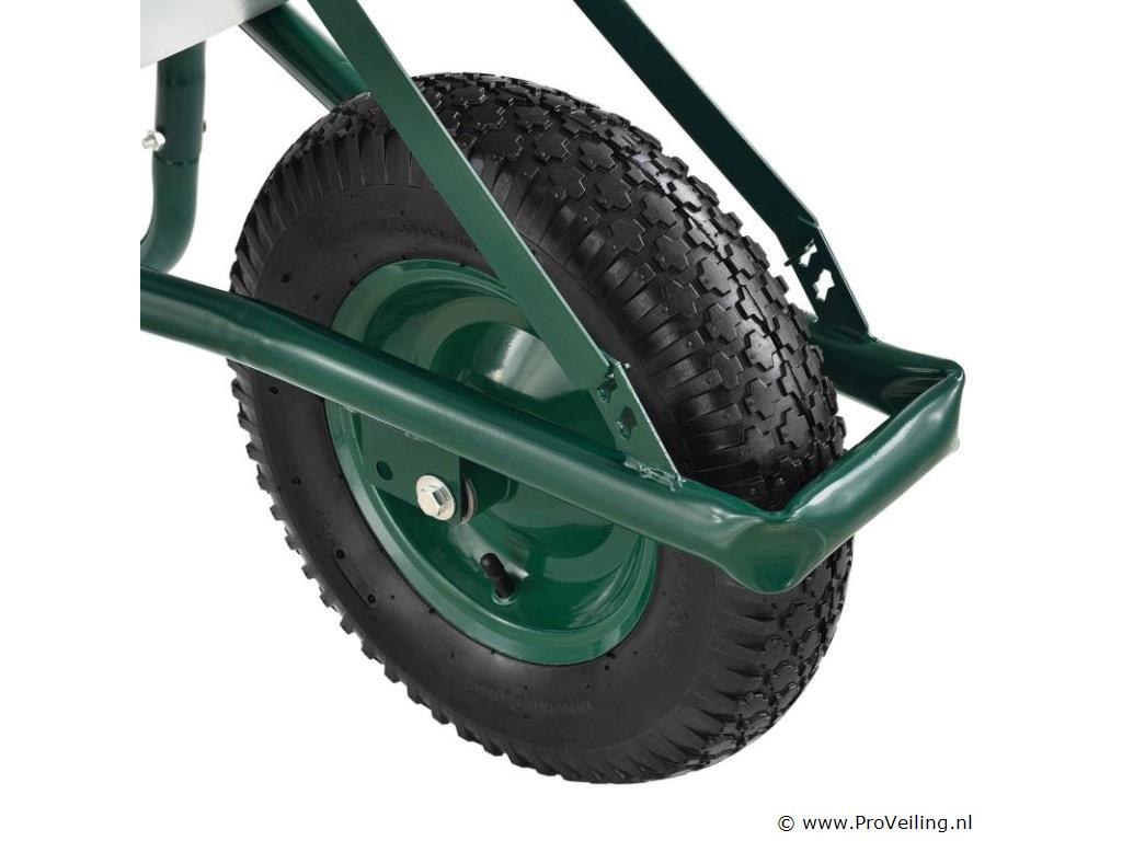 De veelzijdige tuinkruiwagen met gegalvaniseerde kuip en luchtbanden is een onmisbare transporthulp. Het is ideaal voor het gemakkelijk verwijderen van stortgoed in de tuin, stal of op de bouwplaats. Met zijn 100 liter kuip biedt hij voldoende ruimte voor allerlei soorten bulkgoederen: of het nu gaat om het snoeien van heggen, het planten van groenten, het leggen van tegels of het opruimen van de stal - de eenwielerwagen maakt stal-, renovatie- en tuinwerk gemakkelijker voor u. Technische specificaties: Materiaal bak: verzinkt plaatstaal, 0,7 mm dik Materiaal frame: staalbuis, 1,2 mm dik Materiaal handgrepen: kunststof Volume: 100L Leeg gewicht: 12,4 kg Maximale belasting: 210 kg Werkdruk banden: 2 bar Kleuren: zilver, donkergroen, zwart Afmetingen (ongeveer): Breedte: 59cm Lengte: 141cm Hoogte: 62cm Wiel: Ø 40 cm Leveringsomvang: 1 x kruiwagen 1 x instructie
