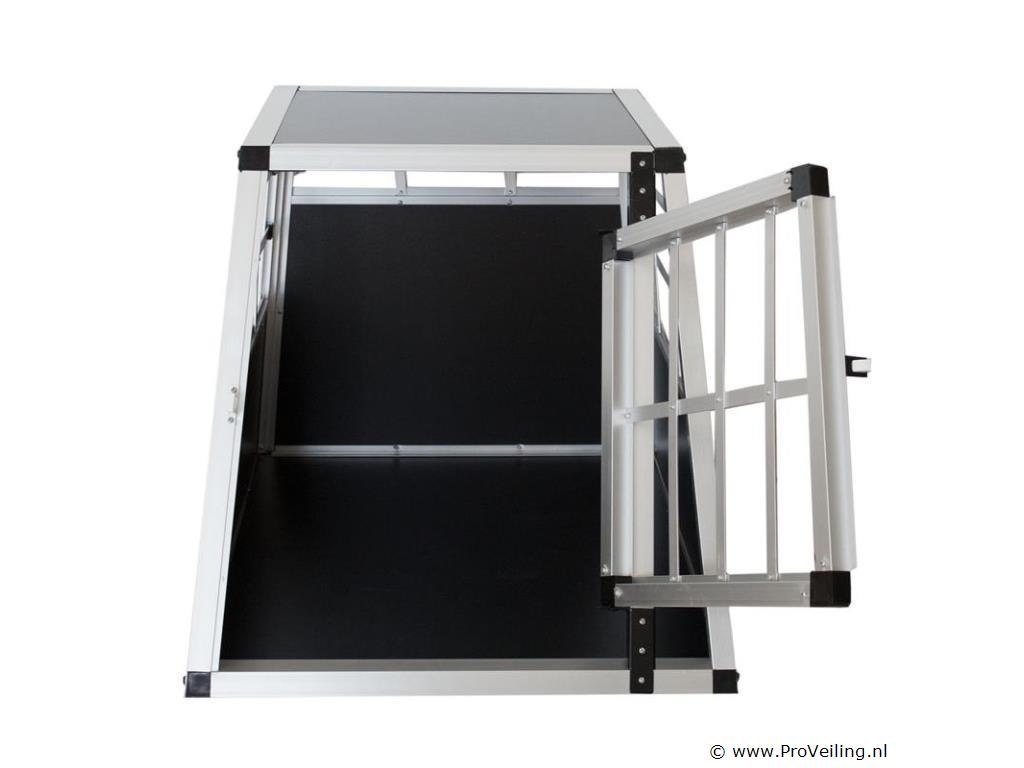 Voor het veilig vervoeren van kleine honden De rit naar de dierenarts of op vakantie wordt kinderspel voor jou en je trouwe viervoeter. Met de aluminium hondentransportbox M vervoer je kleine honden comfortabel en veilig. Plaats de doos in de kofferbak of maak hem vast op de achterbank van uw auto. De kleine pelsneuzen zullen zich dankzij de goede ventilatie meteen thuis voelen. Bovendien kunnen u en uw hond elkaar van alle kanten duidelijk zien, zodat u altijd zeker weet hoe uw huisdier zich voelt. Technische specificaties: Materiaal: Aluminium / MDF panelen Geschikt voor: puppies, kleine honden Beoogd gebruik: autoritten, vakanties, reizen Plaats van gebruik: kofferbak, achterbank Kleur: zwart/zilver Aantal deuren: 1 Afmetingen (ongeveer): Hoogte: 51 cm Vloeroppervlak: 54 × 69 cm Plafondpaneel: 45 × 45,5 cm Kantelhoek voorzijde: ongeveer 65 graden Kantelhoek achter: ongeveer 90 graden Advies: Controleer voor bestelling of de maatvoering goed is.