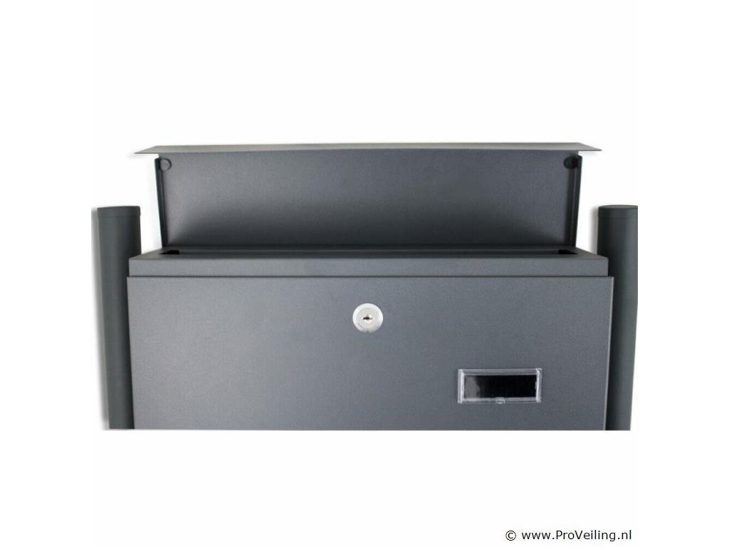 Met zijn tijdloze, elegante design past deze staande brievenbus perfect in elke woonomgeving. En dankzij het compacte ontwerp neemt de staande brievenbus weinig ruimte in beslag. De montage is snel en eenvoudig met de hand. De levering bevat 2 standaards, 2 kruisschoren, bevestigingsmateriaal en elk twee sleutels Technische specificaties: Afmeting (B/H/D) 50 cm x 120 cm x 13 cm Afmetingen brievenbus (B/H/D) 37 cm x 36,5 cm x 10,5 cm Afmeting krantenvak (B/H/D) 36 cm x 9 cm x 8 cm Afmetingen sleuf (B/D) 33cm x 3,5cm Standhoogte 1.20 m Standaard doorsnee 4 cm Materiaal: metaal, gepoedercoat Gewicht 5,25 kg Kleur: donkergrijs Leveringsomvang: 1x brievenbus 2x standaard 2x kruisschoren 2x sleutels bevestigingsmateriaal