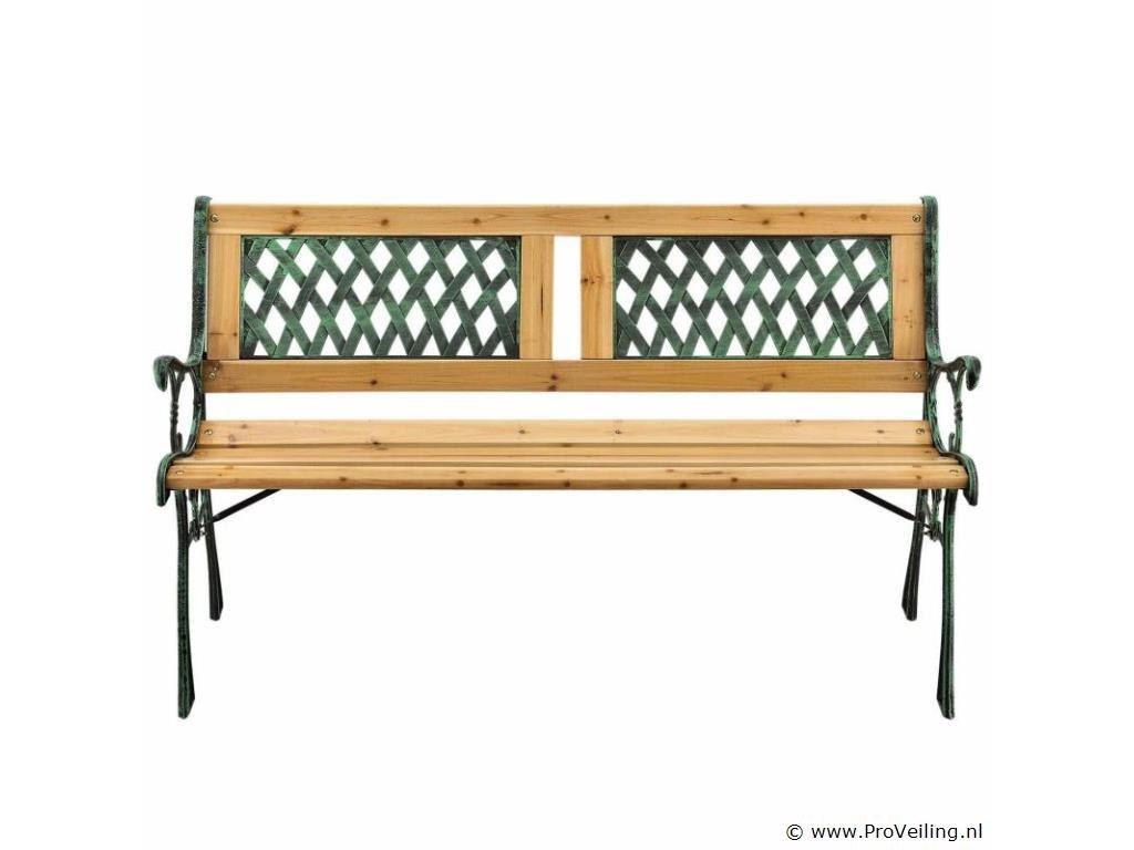De romantische en speelse tuinbank Sanremo staat prachtig in je tuin met zijn retro flair! Het is gemaakt van gelakt dennenhout en gietijzeren zijkanten met patina-effect. De weerbestendige en robuuste materialen maken de bank perfect voor buitengebruik. Op de 122 cm lange en 54 cm diepe zitting kunnen 2 personen comfortabel zitten. Praktische armleuningen bieden u extra comfort. De bank ziet er geweldig uit met veel tuinmeubelen en rondt je buitenuitrusting af. Technische specificaties: Materiaal: gelakt dennenhout, gepoedercoat gietijzer Materiaal diamant decoratief element: kunststof Kleur hout: naturel Kleur gietijzer: zwart-groen Aantal zitplaatsen: 2 Houtdikte: 18 mm Gewicht: 13,5 kg Afmetingen (ongeveer): Lengte: 122 cm Breedte: 54cm Hoogte: 73cm Zithoogte: 38 cm Leveringsomvang: 1 × tuinbank 1 × montage-instructies