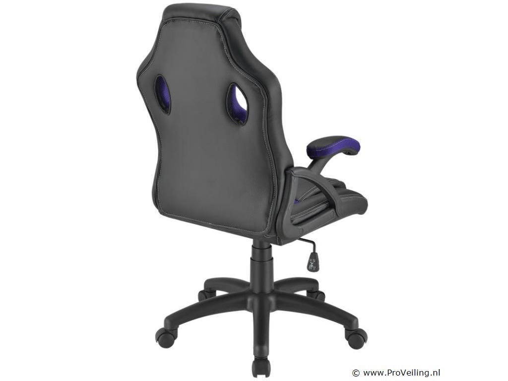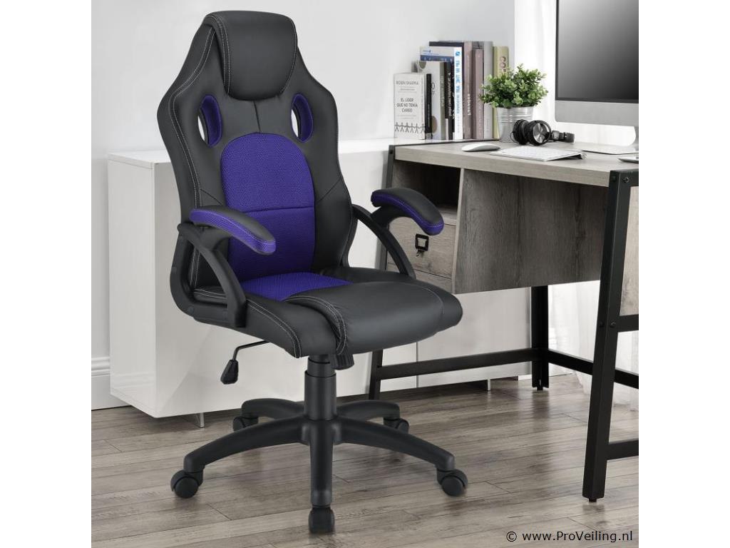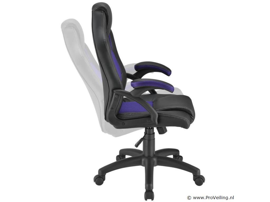 De gezellige Racing bureaustoel Montreal (paars) overtuigt met een hoog zitcomfort. Met zijn ergonomisch gevormde zitting, de kantelbare rugleuning en zitting en de gecapitonneerde armleuningen laat de moderne bureaustoel in trendy racer design urenlang comfortabel zitten. De draaistoel is daarom ideaal om thuis op kantoor te werken, huiswerk te maken en te leren, en voor gepassioneerde gamers om op de computer te spelen. Technische specificaties: Materiaal: kunststof, metaal, imitatieleer, mesh inzetstuk Kunstleer kleur: Zwart Mesh kleur: paars Maximale belasting: 120 kg Afmetingen (ongeveer): Totale hoogte: 101 - 111 cm Hoogte rugleuning: 65 × 66 cm Zitting: 47 x 52 cm Zithoogte: 46 - 56 cm Zitbreedte: 47 cm Zitdiepte: 52 cm Leveringsomvang: 1 × bureaustoel 1 × montage-instructies