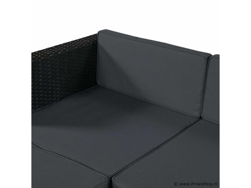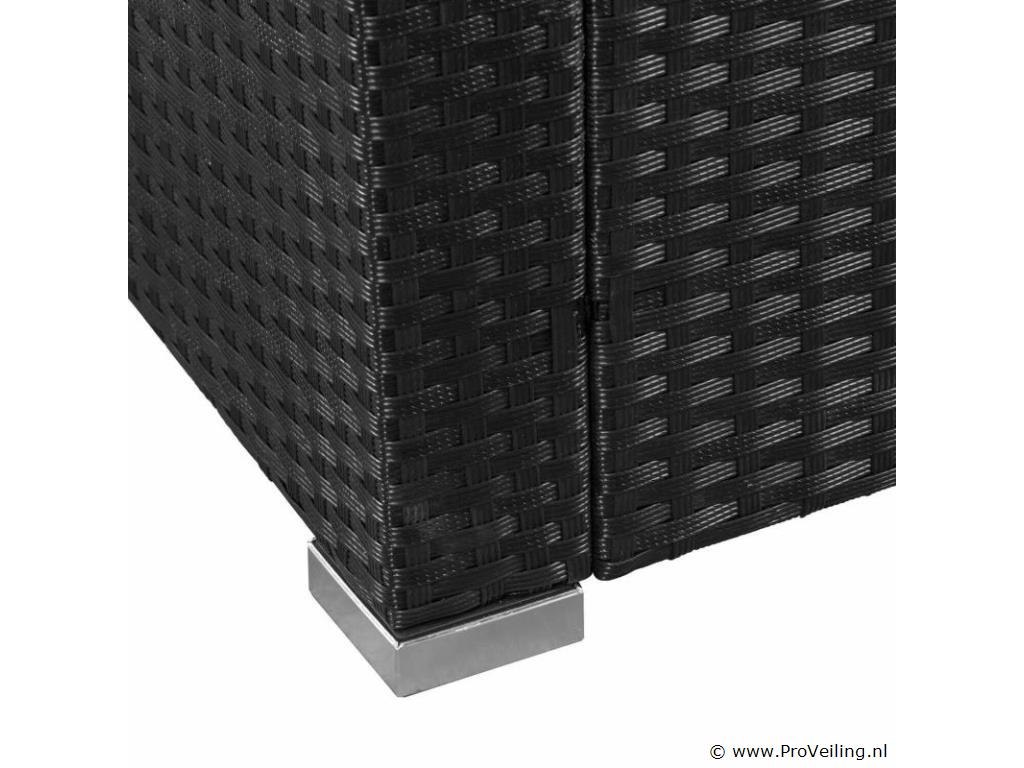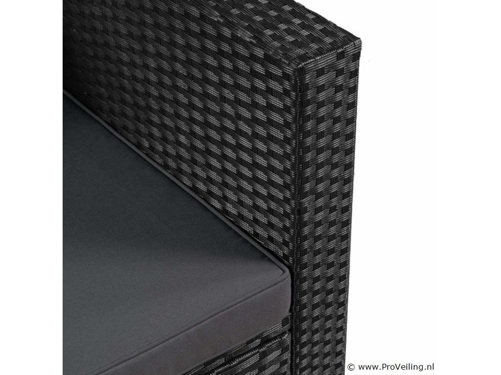 Ben je op zoek naar een comfortabele en grote loungeset voor in je tuin, terras of balkon? Met de zitgroep "Punta Cana M" verander je je buitenruimte in een stijlvolle plek om te ontspannen en je goed te voelen. Gezellige avonden met familie, vrienden of buren worden een geweldige belevenis in de buitenlucht. De unieke rotan-look in zwart met grijze kussens geeft je nieuwe loungemeubel een moderne charme. Creëer je eigen oase van welzijn om te ontspannen en samen te zitten. Technische specificaties: Materiaal: Weefsel: vezels van polyrotan Onderstel: staal Tafelblad: glas Hoezen: schuim, polyester Kleur: Vlecht: zwart Tafelblad: helder Kussenslopen: donkergrijs Afmetingen (ongeveer): Tafel: 61 × 61 × 37 cm (L x B x H) Bank: 178 × 69 × 65 cm (L x B x H) Kruk: 61 × 61 × 37 cm (L x B x H) Dikte zitkussen: 5 cm Dikte glasplaat: 0,5 cm Breedte rugkussen: 54 cm Zitkruk: 60 × 60 cm Leveringsomvang: 1x tafel 1 * Bank 1 x kruk 4 x zitkussens 3 x rugkussens 1 x montagehandleiding