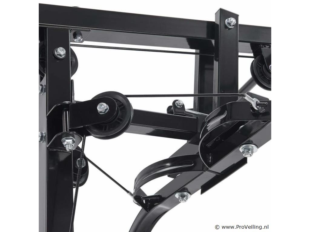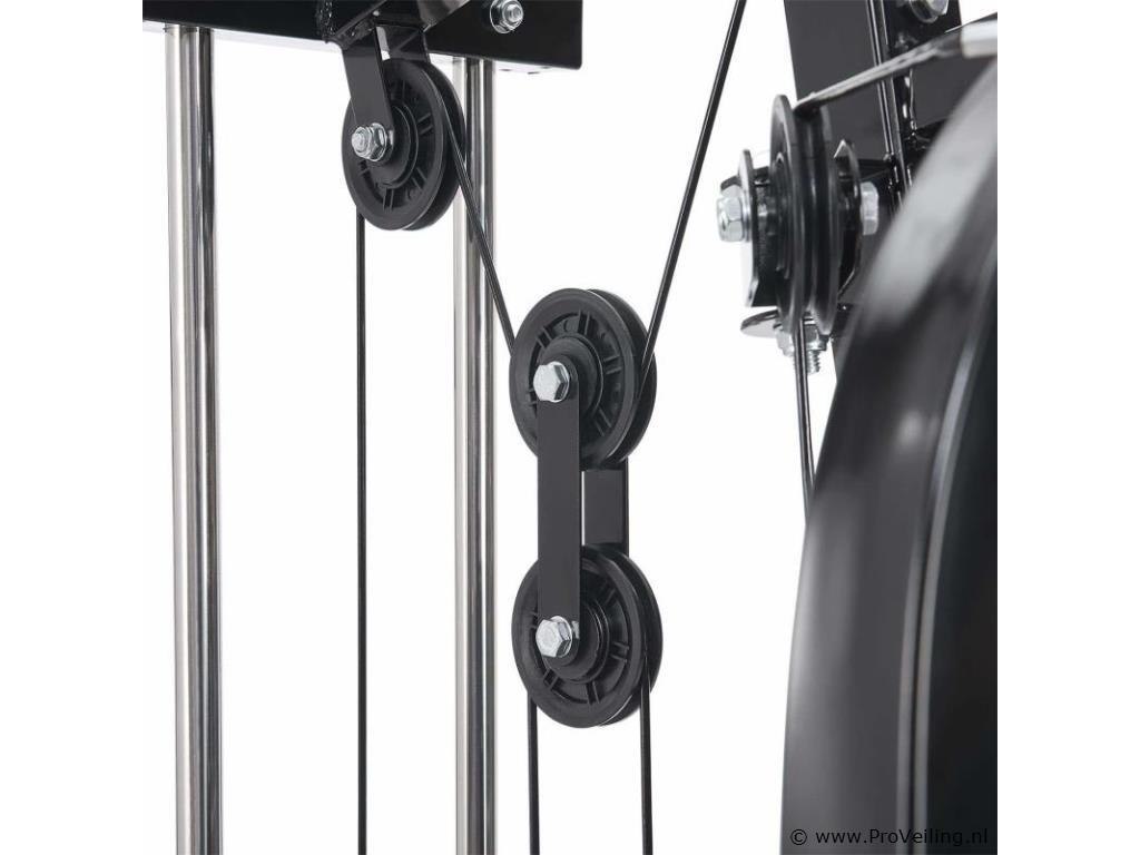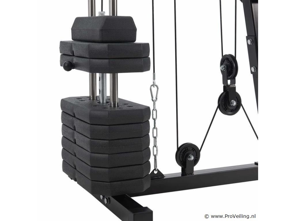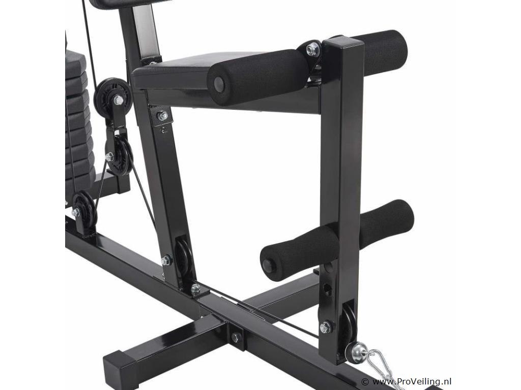 Uw persoonlijke fitnessstudio voor thuis: het ArtSport krachtstation ProfiGym 2000. Met dit krachtstation traint u effectief uw hele lichaam - ideaal voor uw intensieve thuistraining. De doordachte hometrainer is extreem ruimtebesparend en combineert meerdere sporttoestellen in één. Vervolg uw trainingsplan binnen uw eigen vier muren: bevorder spierdefinitie door gevarieerde fitnessoefeningen voor het boven- en onderlichaam. Pas de intensiteit eenvoudig aan naarmate je vordert met behulp van de halterschijven. Het trainingsstation is daarom ideaal voor dames en heren. Technische specificaties: Materiaal krachtstation: staal Materiaal zit- en rugkussens: PE-schuim, PVC-leer De kleur zwart Plaatgewicht: 8 × 4,5 kg Gewicht bovenplaat: 1 × 4,3 kg Totaal halterschijven: 40,3 kg Afmetingen (ongeveer): Totale afmetingen: 135 × 103 × 201 cm Leveringsomvang: 1 x krachtstation van ArtSport 1 x vlinderstang 1 x lat pulldown stang 1 x biceps katrol 9 x halterschijven 1 × Instructie