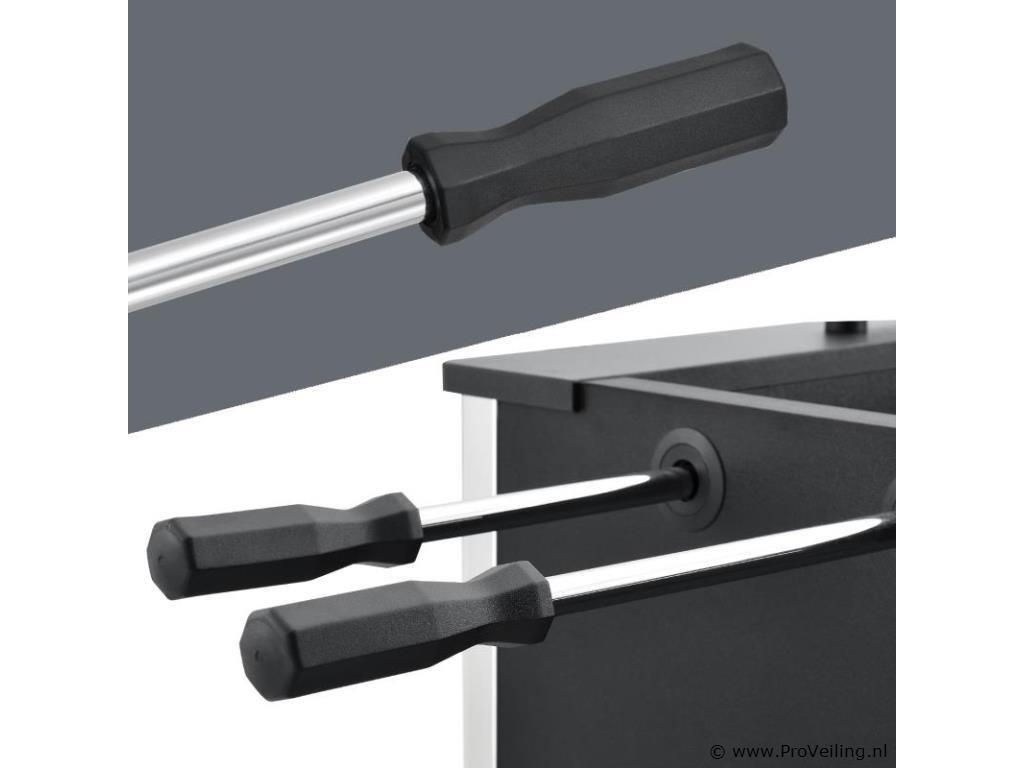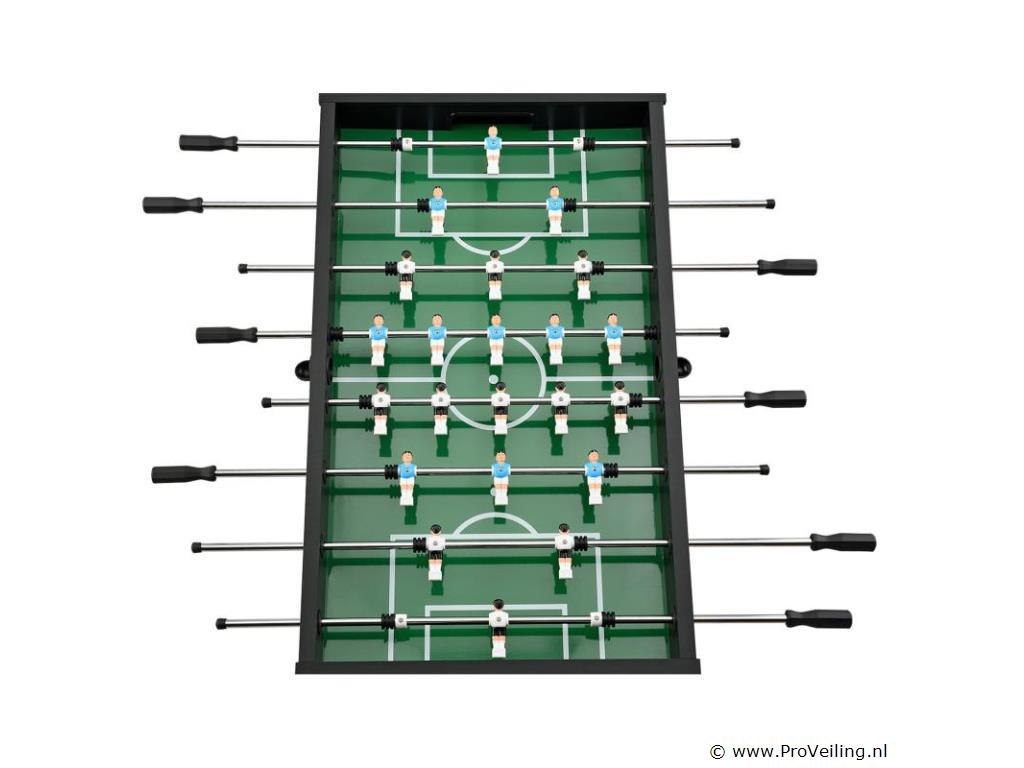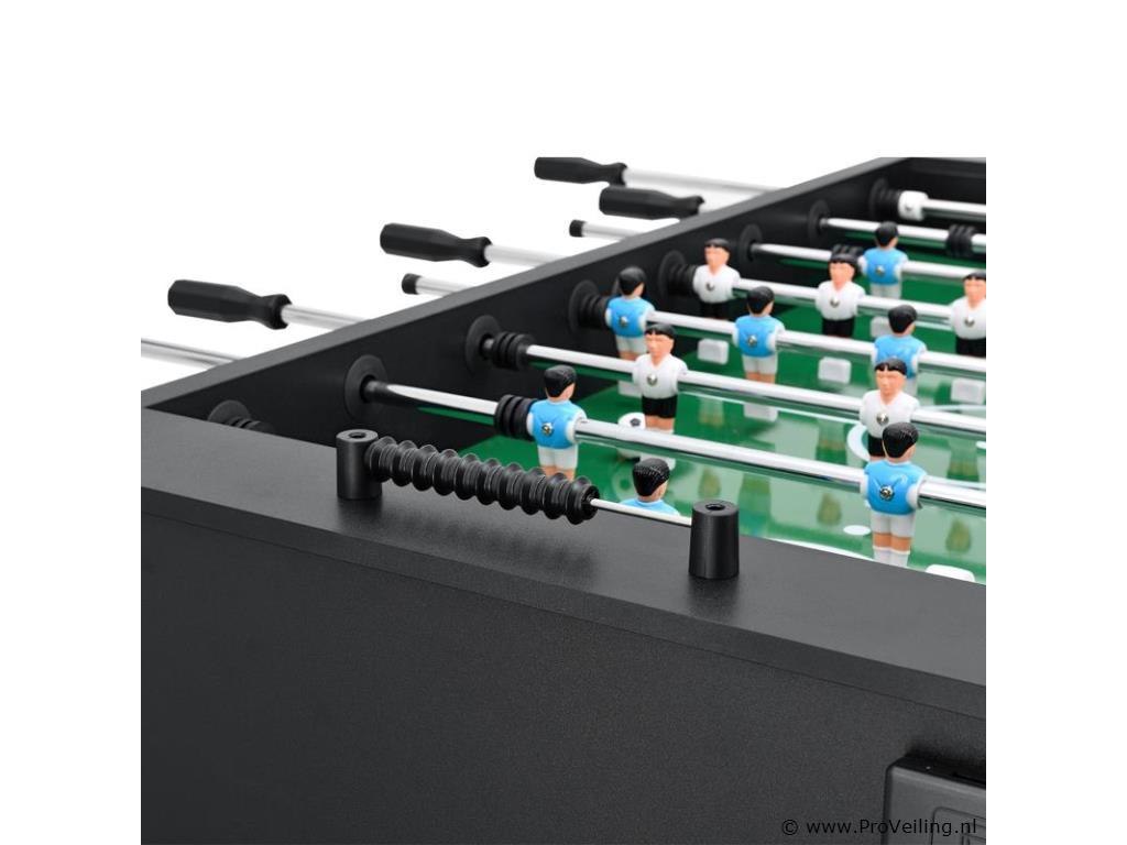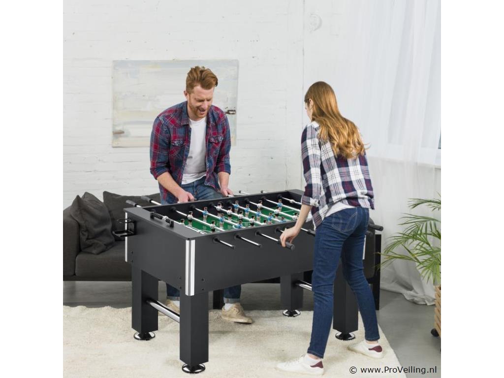 Technische specificaties: Kleur: zwart Materiaal: MDF-hout, kunststof Voeten: in hoogte verstelbaar Afmetingen (ongeveer): Lengte: 139 cm Breedte: 72 cm Hoogte: 88 cm Speelveld: 120 x 69 cm Ø tafelpoten: 12 cm Ø staven (voor speelfiguren): 1,5 cm