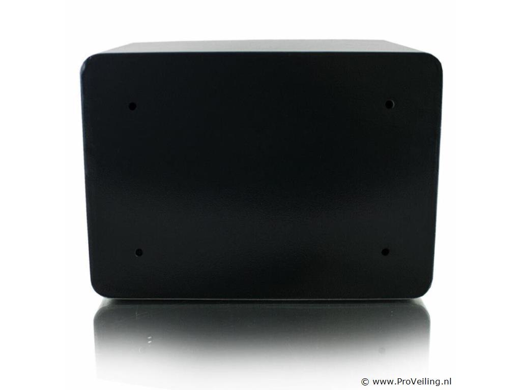 Design Veilig Zwart - Veilig voor wand- of kastmontage - elektronisch cijferslot (programmeerbaar) - Deur met dubbele grendelvergrendeling - inclusief 2 sleutels Bescherm waardevolle spullen met deze elektronische kluis. Het is ideaal voor het opbergen van waardevolle spullen of belangrijke documenten. Vanwege zijn formaat is hij zeer onopvallend en ruimtebesparend te installeren - kies tussen veilige wand- of kastmontage. De kluis kan alleen worden geopend door het invoeren van uw persoonlijke pincode of met de meegeleverde beveiligingssleutel. De deur met dubbel grendelslot beveiligt de kluis tegen onbevoegd openen. TECHNISCHE SPECIFICATIES Buitenafmetingen (B/H/D) 355 mm x 255 mm x 250 mm Interne afmetingen (B/H/D) Interne afmetingen: 350 mm x 250 mm x 195 mm (B/H/D) met gesloten deur sterkte stalen wand 2 mm Stalen deurdikte 3 mm De kleur zwart Gewicht: 9,95 kg LEVERINGSOMVANG - 1 x kluis - 4x bevestigingsbouten